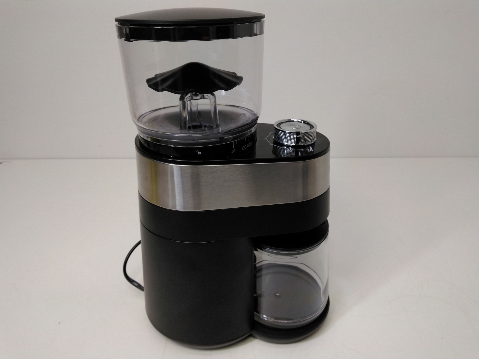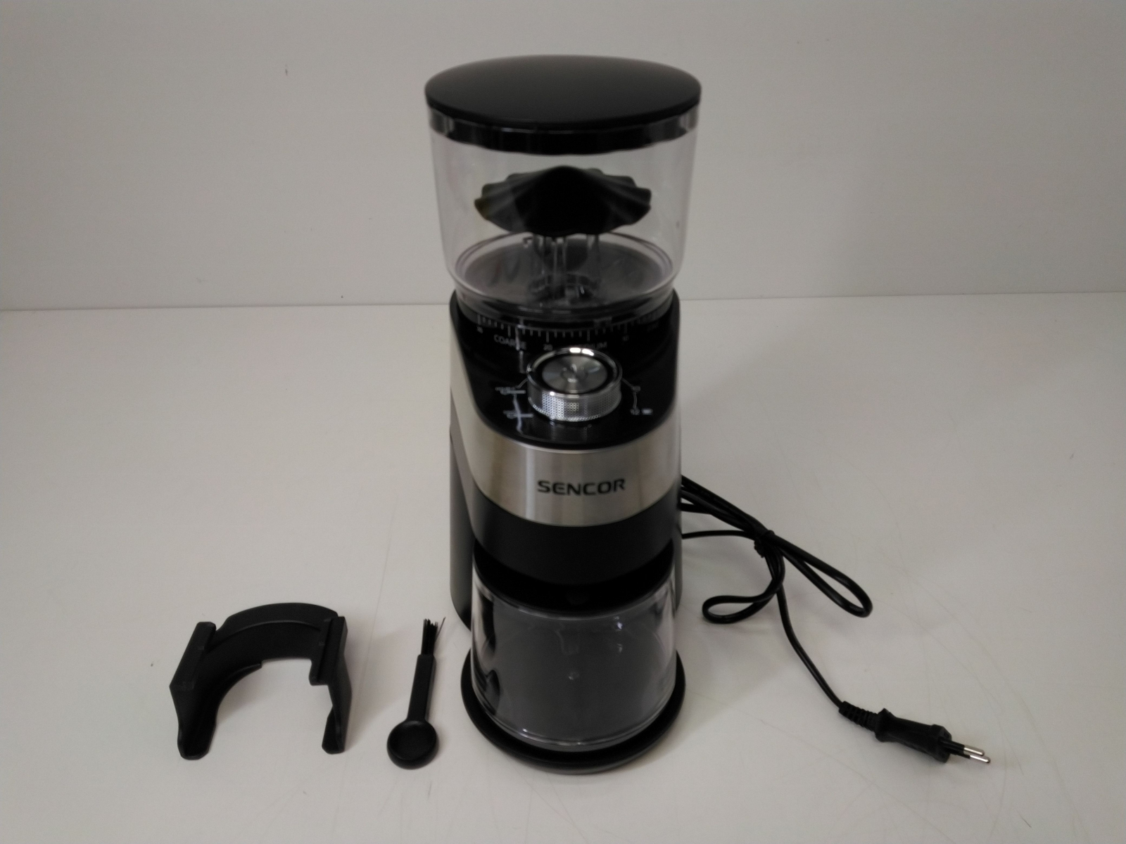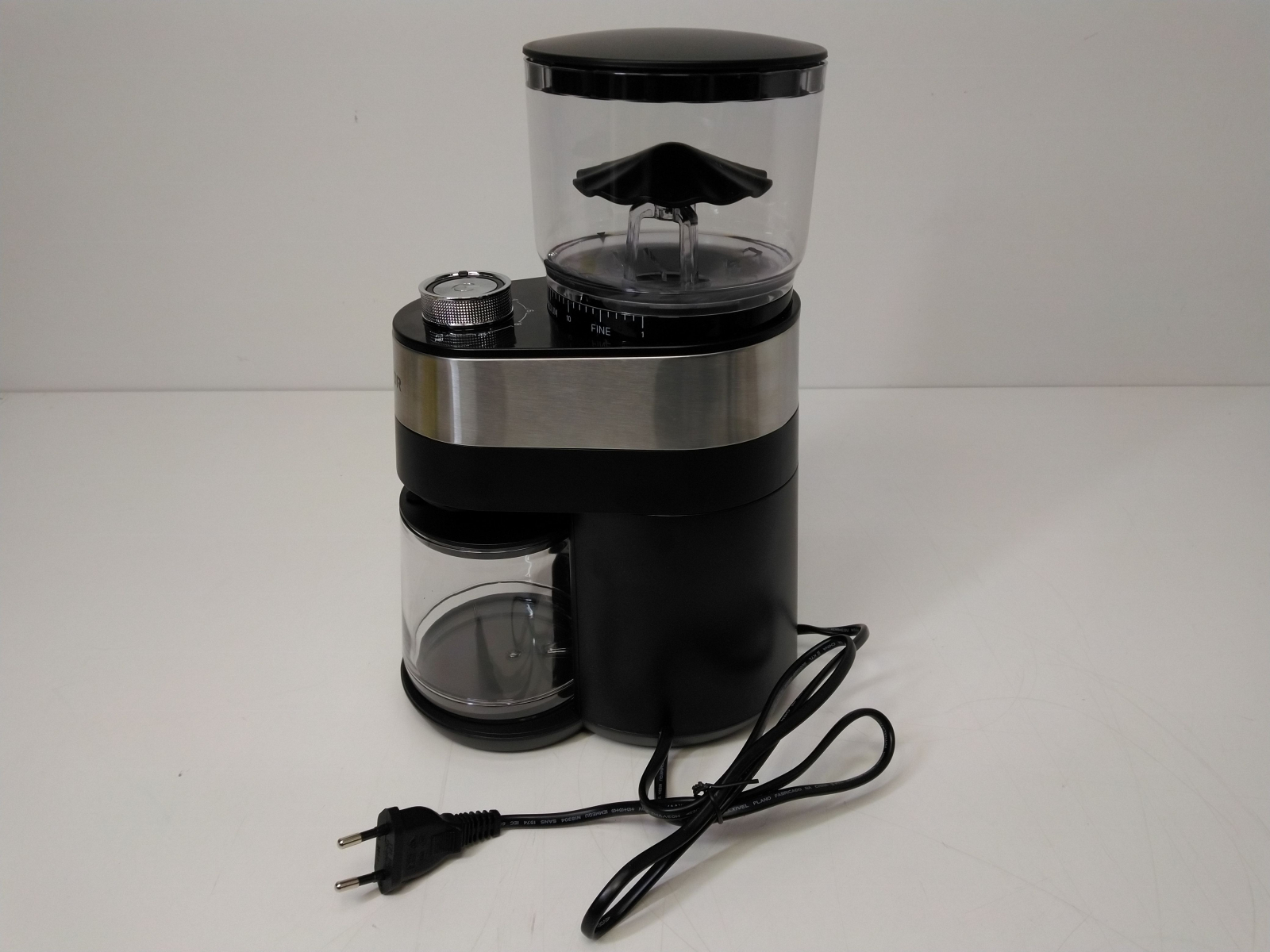 Elektrický kávomlýnek s plochými mlecími kameny, ploché nerezové mlecí kameny zajišťující rychlé a přesné mletí, 30 nastavení mletí od jemného po hrubé, nádoba na zrnkovou kávu 200 g, nádoba na mletou kávu 160 g, otočný volič pro nastavení porcí od 1 do 12 šálků s funkcí automati celý popisckého zastavení, vyjímatelný mlecí kámen pro snadné čištění, adaptér pro portafiltr pro přímé servírování do filtru, příkon 140 W, balení dále obsahuje: držák na portafiltr, krabička na zrnkovou kávu, nádoba na kávový prášek a čisticí kartáček.