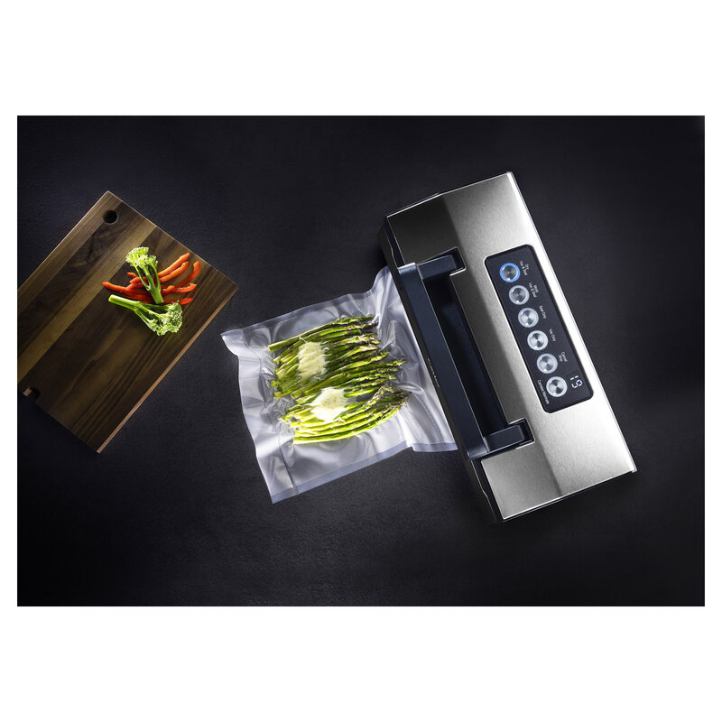 Vakuovačka Catler VS 813 vám pomůže uchovat potraviny déle čerstvé a plné chuti. Je ideálním pomocníkem nejen pro běžné uchovávání potravin, ale i pro vaření metodou sous-vide.Nabízí intuitivní dotykové ovládání a 6 funkcí, díky nimž snadno přizpůsobíte proces vakuování a zatavení různým typům potravin – suchých nebo vlhkých.