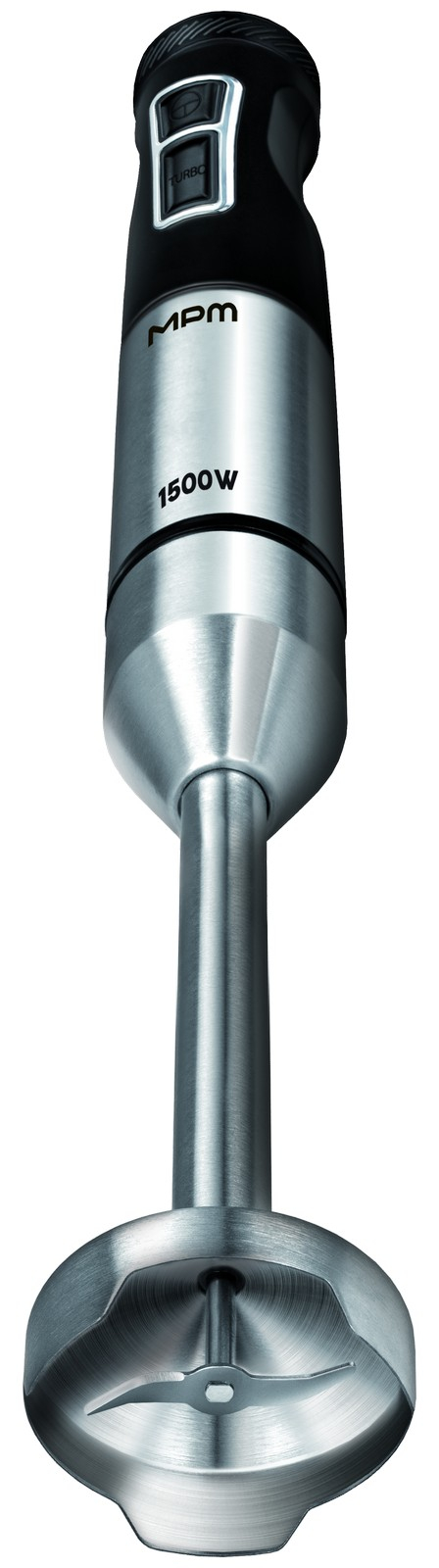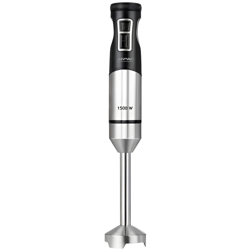 Ponorný mixér s příkonem 1200-1500 W, 9 rychlostí + turbo režim, očko pro zavěšení, nerezová noha, nerezový sekací nůž, tichý provoz, ergonomicky tvarovaná rukojeť, délka přívodní šňůry 105 cm.