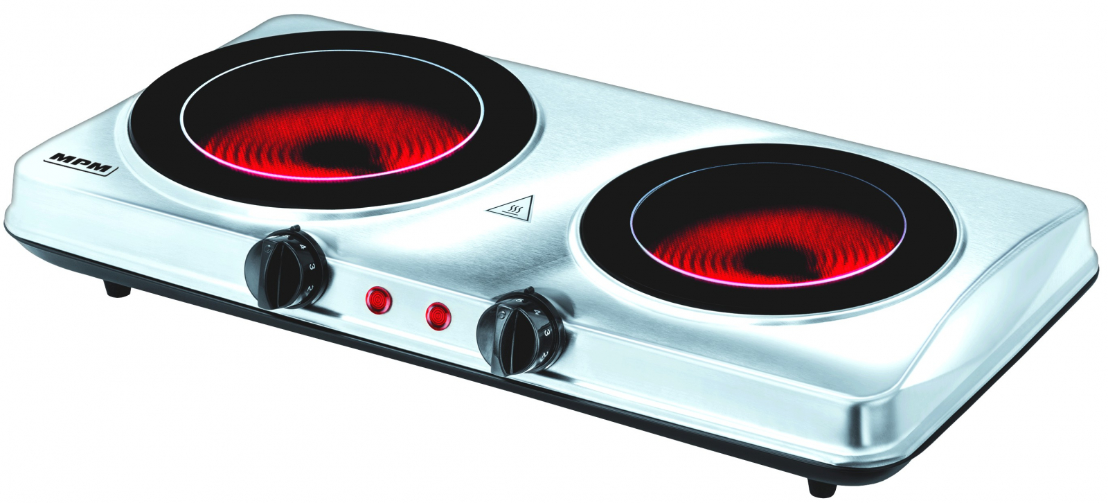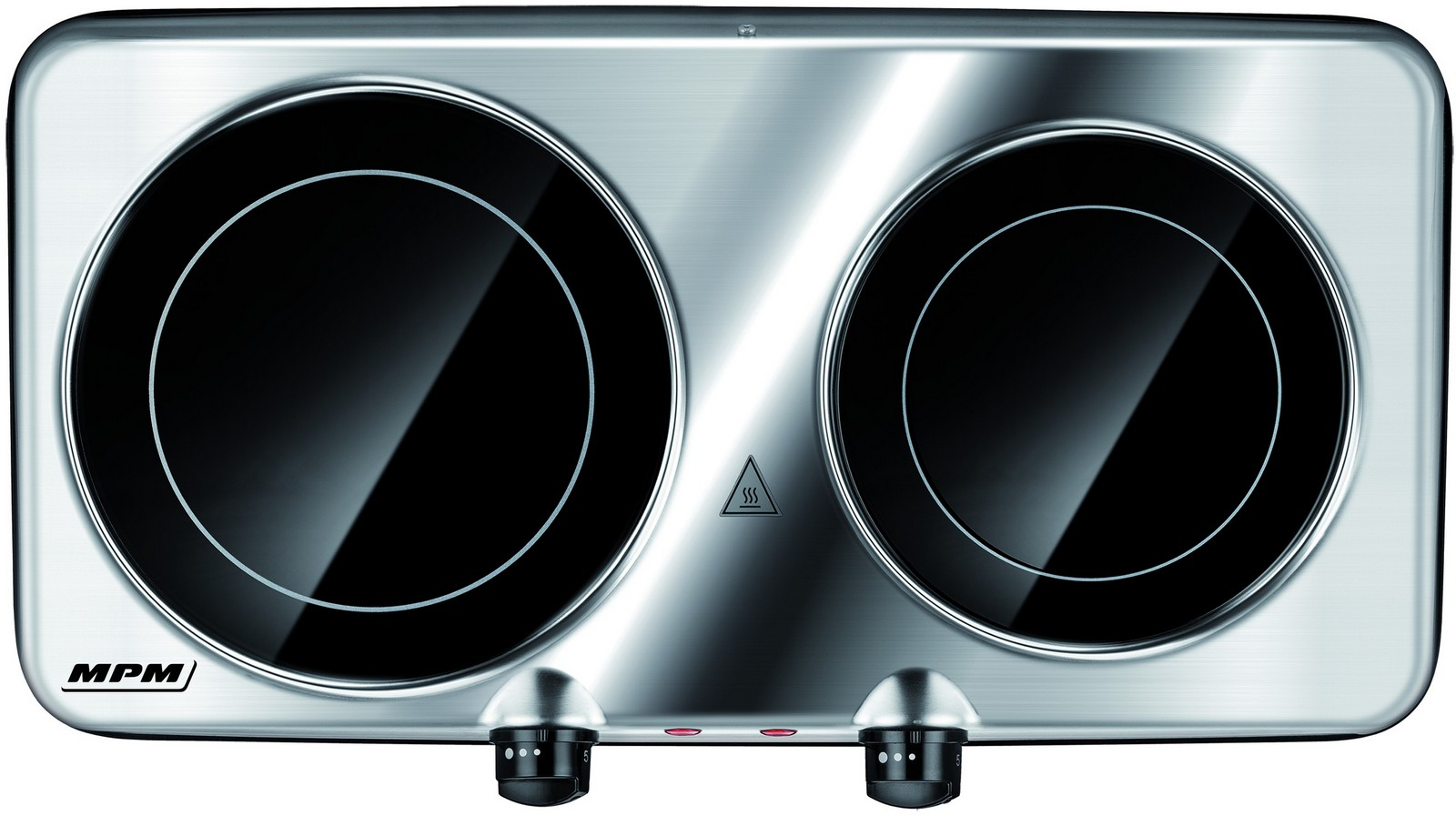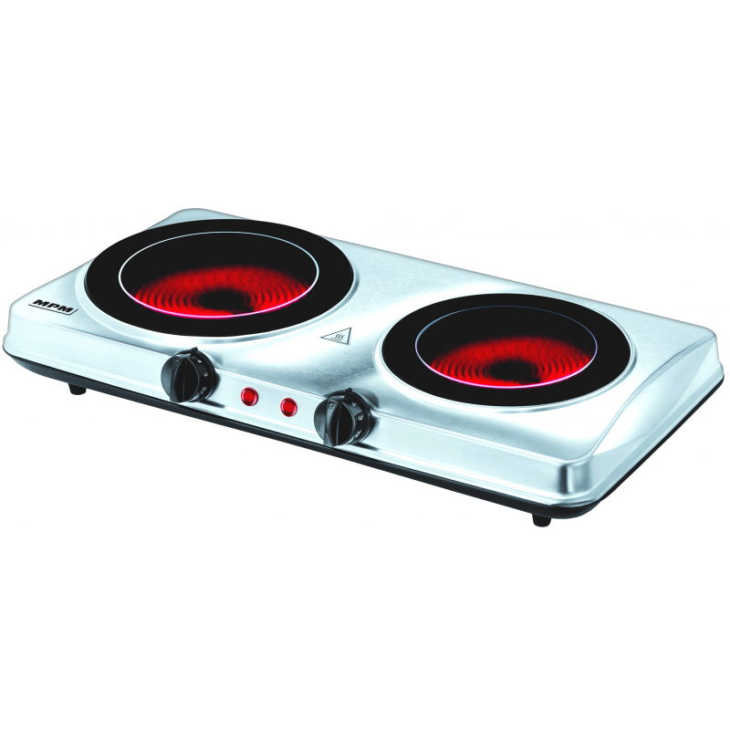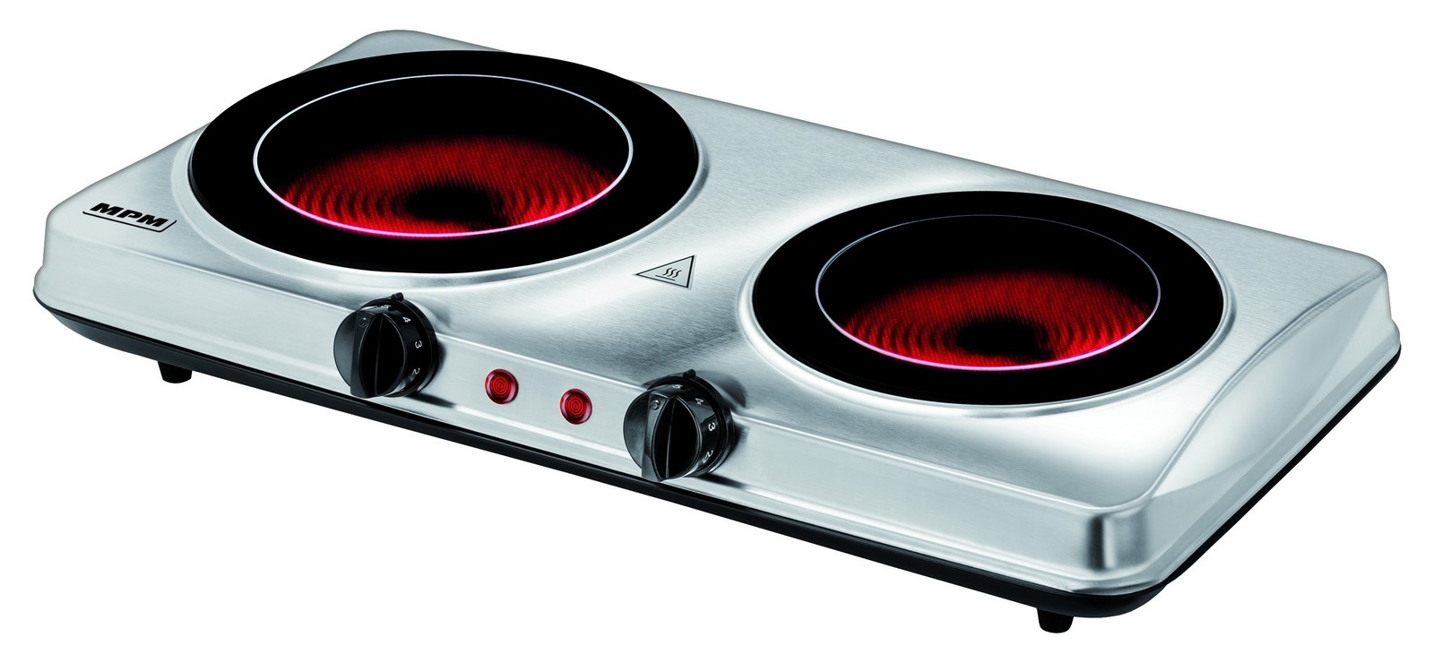 Dvouplotýnkový elektrický nerezový vařič se sklokeramickými plotýnkami, světelná signalizace provozu, plynulá regulace teploty, pojistka proti přehřátí, délka napájecího kabelu 76 cm, barva: nerez, dvě plotýnky o průměru 18 cm s příkonem 1200 W a 16 cm s příkonem 800 W, rozměry 4 celý popis68 x 247 x 71mm.