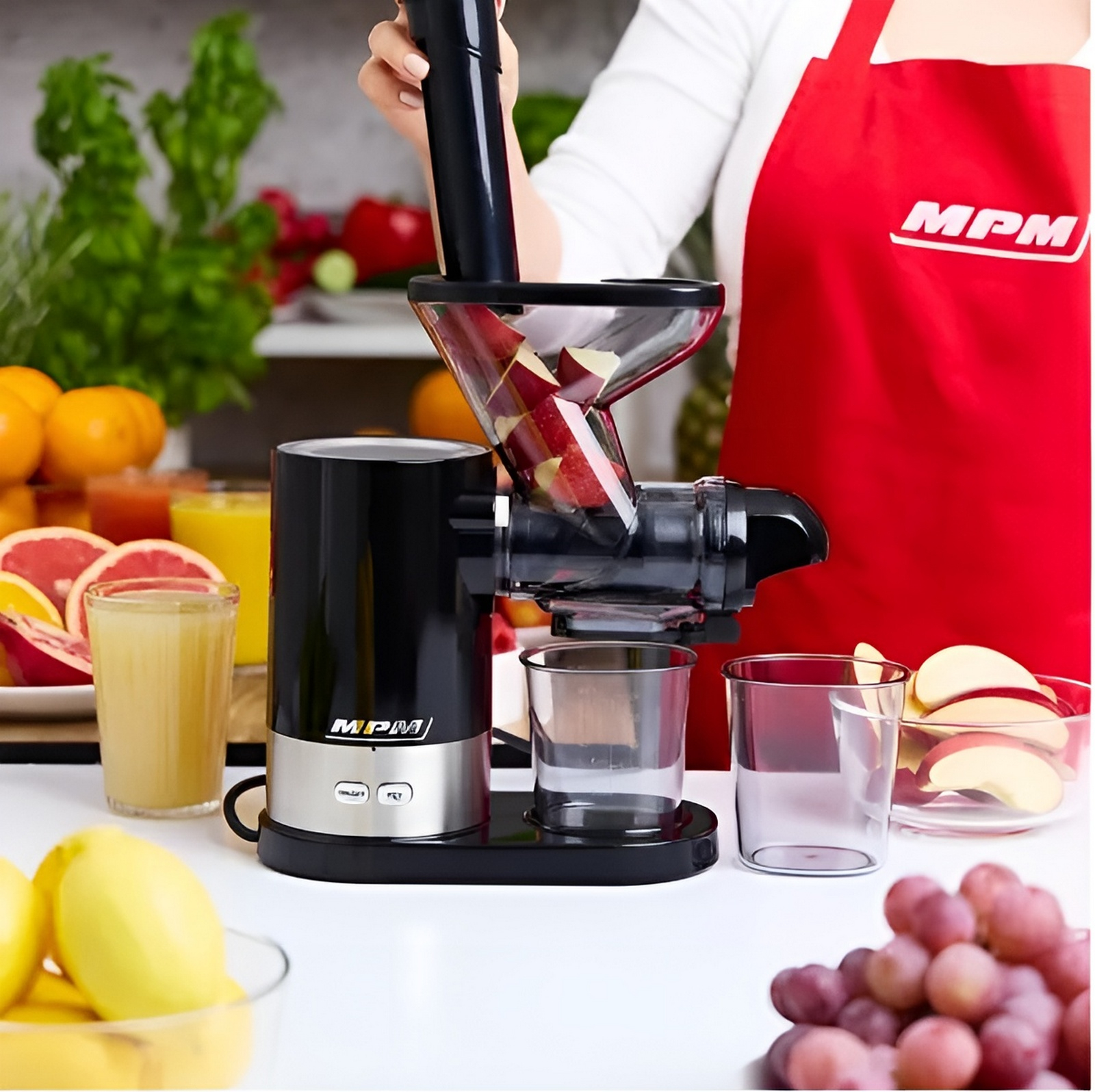 Šnekový pomaloběžný odšťavňovač, automatické oddělení dřeně, nádoba na šťávu 300 ml, nádoba na dužinu 400 ml, 60 otáček za minutu, zpětný chod, maximální příkon 450 W. Všechny odnímatelné části lze mýt v myčce nádobí. Protiskluzové nožičky, rozměry (š x v x h): 118 x 282 x 265 mm celý popis, délka přívodního kabelu 1,2 m.