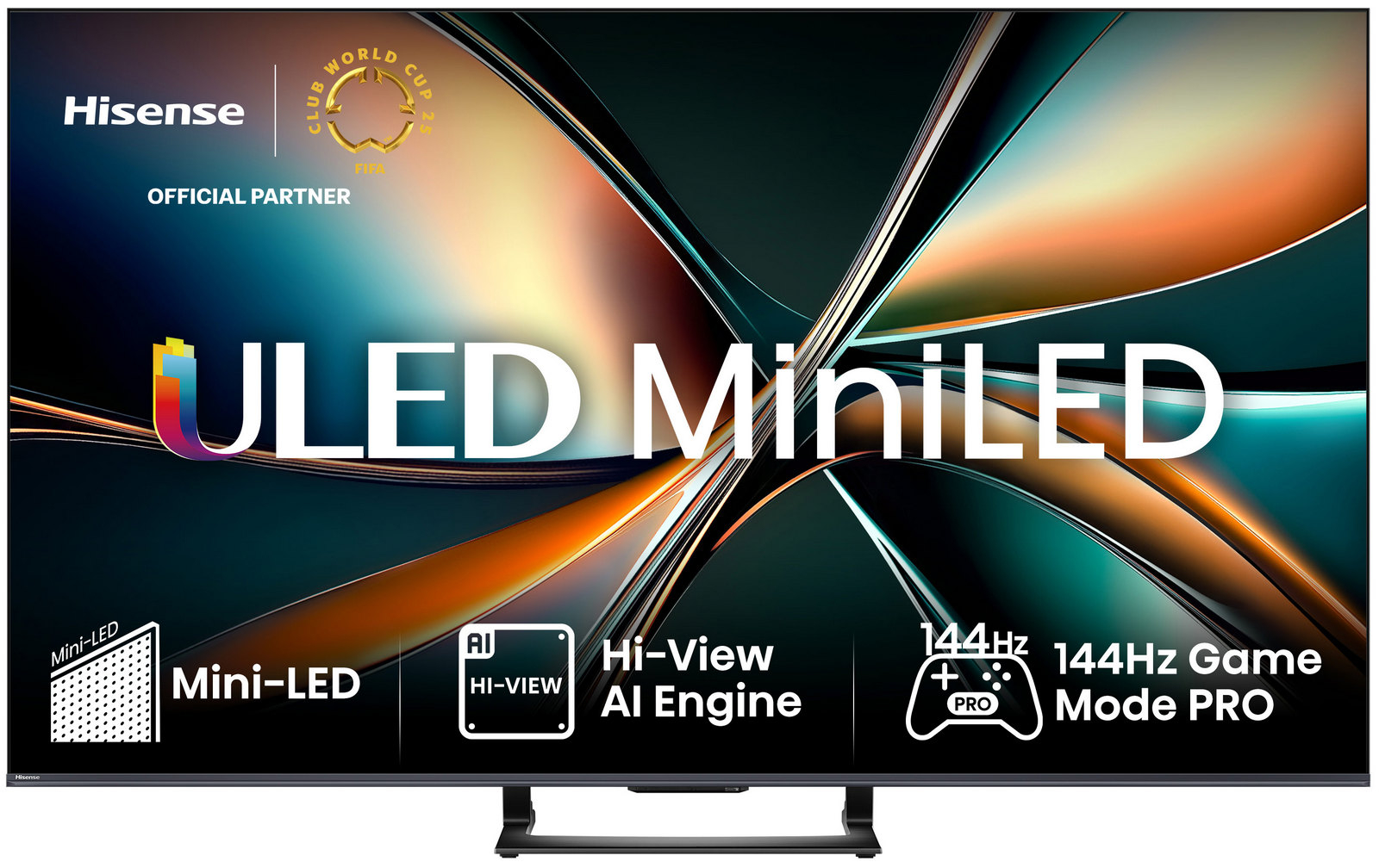 MiniLED 4K Smart UHD televizor, úhlopříčka 164 cm (65"), energetická třída E, rozlišení UHD 3840 x 2160 px., operační systém Vidaa, DVB-T/T2/C/S/S2 HEVC, HbbTV, Dolby Atmos/Vision IQ, DTS Virtual X decoding, EZPlay, výstupní výkon 2x 10 W + 20W (vestavěný subwoofer), 4x HDMI, eAR celý popisC, ALLM, VRR, EZPlay, 2x USB, přehrávač foto/video/hudba, Bluetooth, DLNA, Ethernet, CI+, optický výstup, AV IN, sluchátkový výstup, světelný senzor, Netflix, YouTube, OnePlay, Disney+, Max a další, Hi-View AI Engine, 144 Hz Game Mode PRO, AMD FreeSync Premium, VESA 400x400, hmotnost 20,4 kg, rozměry (š x v x h): 1446 x 896 x 326 mm.