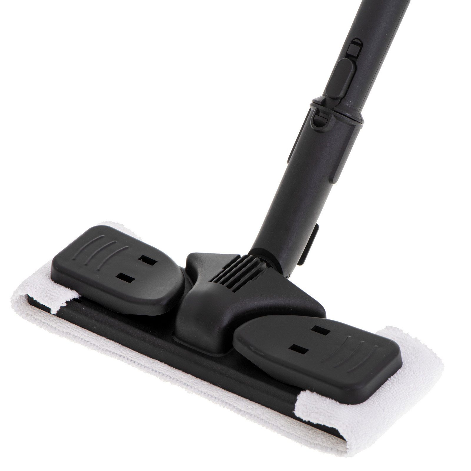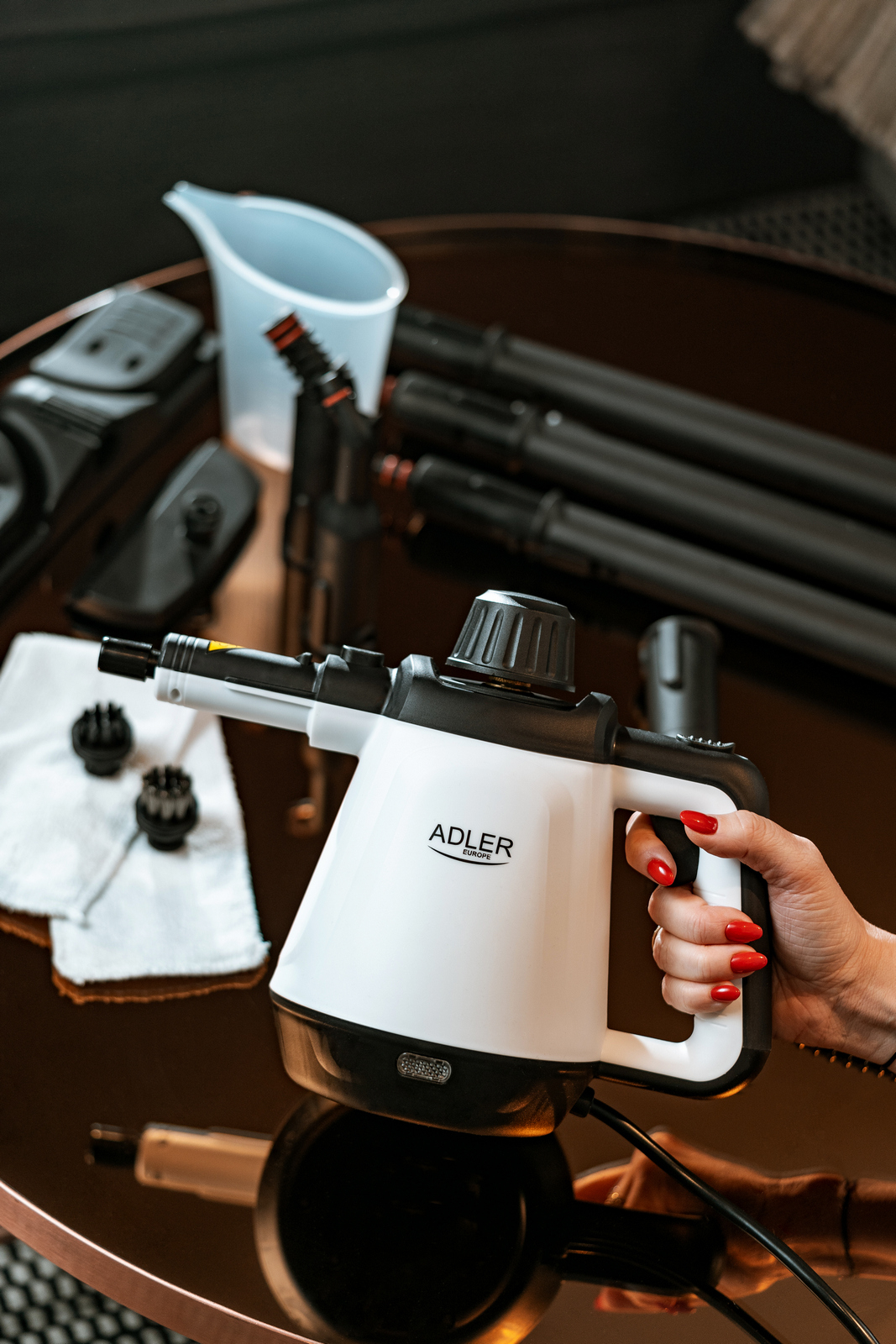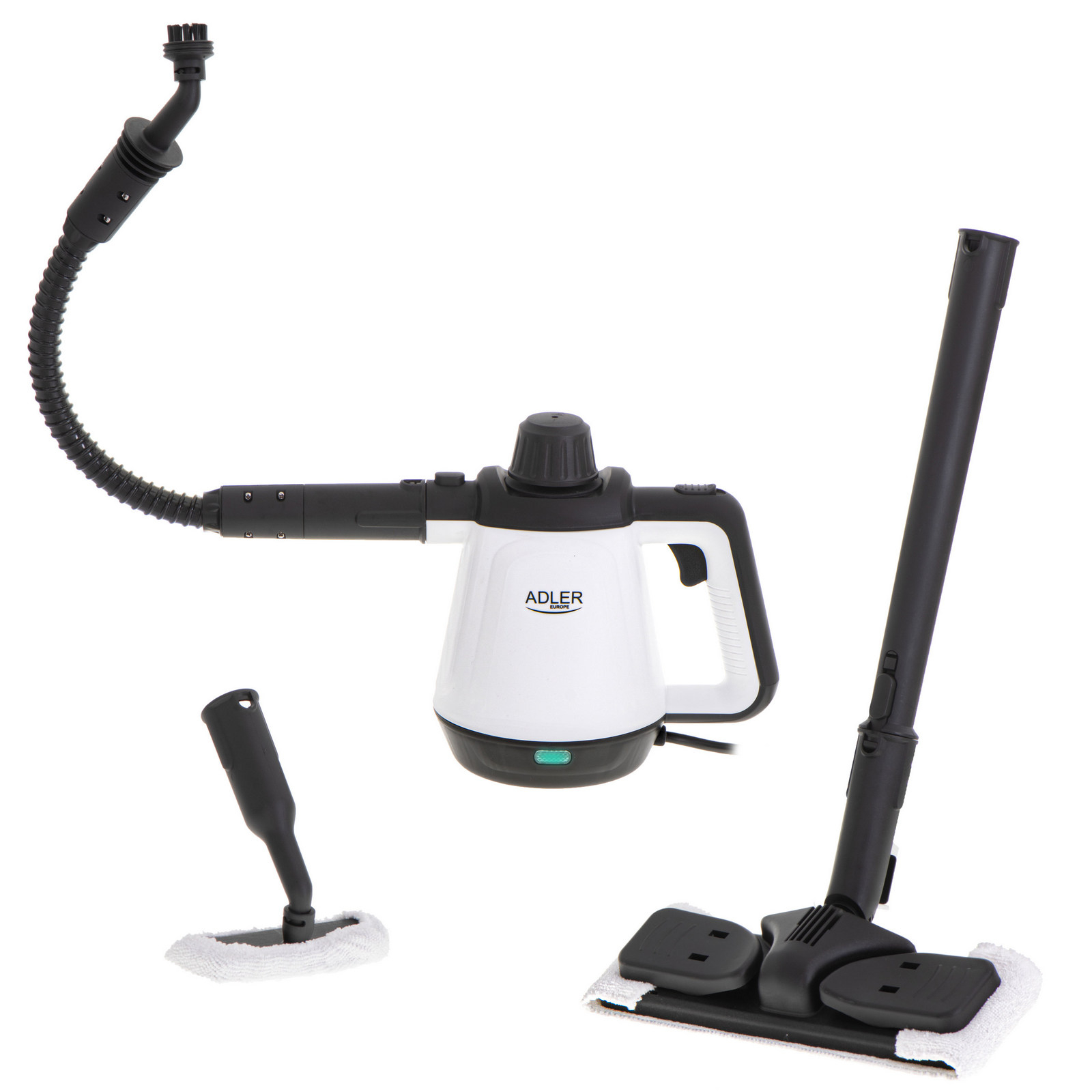 Parní čistič o příkonu 1500 W, objem nádrže 450 ml, výstup páry 44 g/min, teplota páry až 120°C, maximální tlak 3,5 baru, ochrana proti přehřátí. Balení obsahuje: kovový kartáč, nylonový kartáč, flexibilní prodlužovací hadice, 3x prodlužovací trubice 33 cm, velká tryska, zahnutá celý popistryska, parní plochý štětec, kartáč na podlahu, široká stěrka na okna a rovné povrchy + návlek z textilie, hadřík na podlahový kartáč, odměrku, trychtýř. Délka kabelu 2,78 m, hmotnost 2,43 kg.
