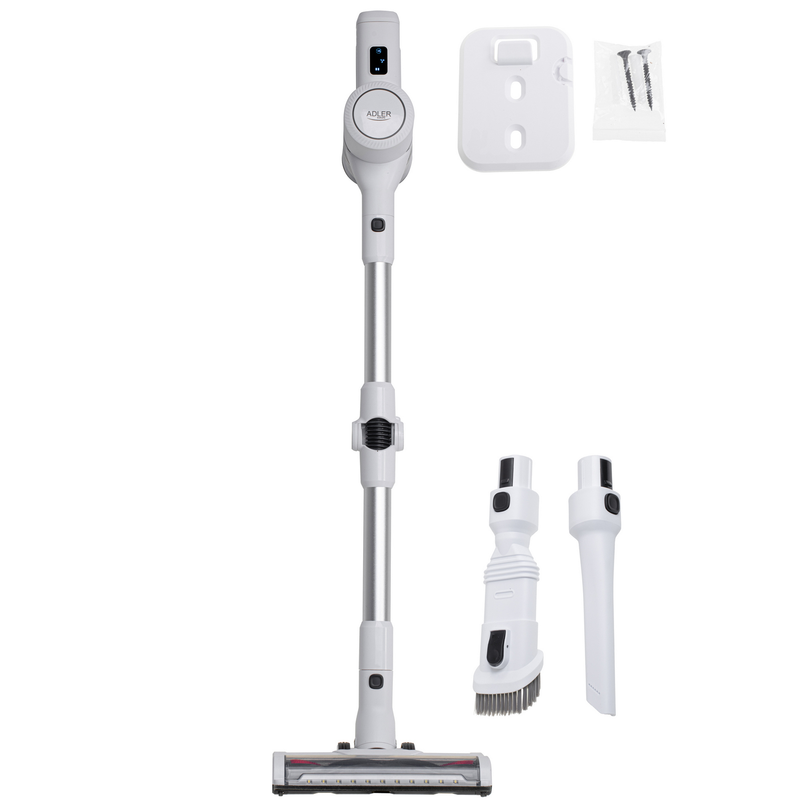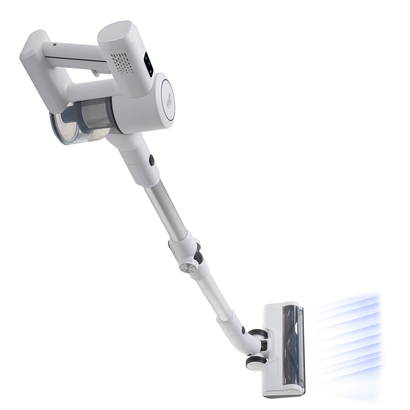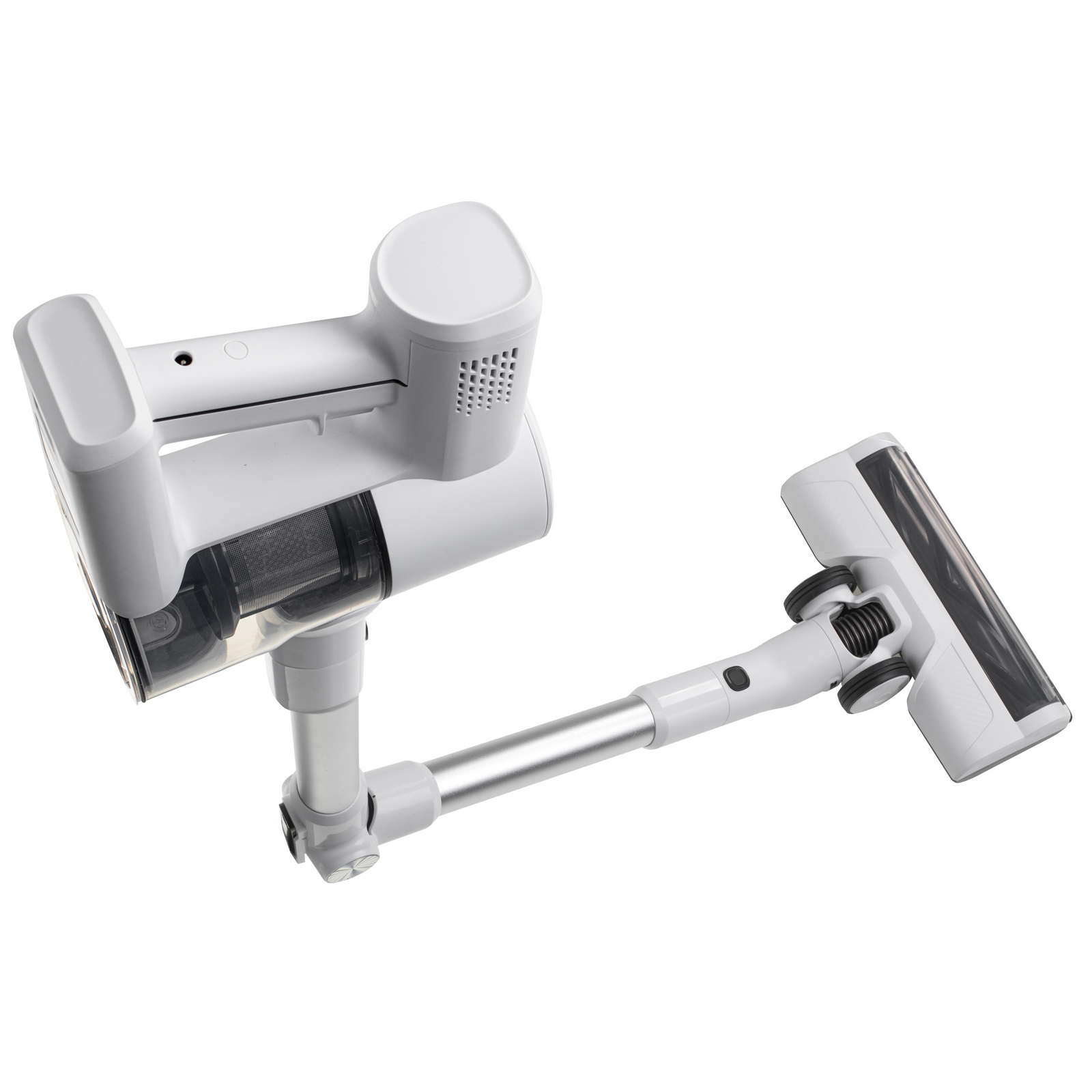 Tyčový a ruční vysavač 2 v 1. Akumulátor 22 V, doba provozu na jedno nabití až 35 minut. Doba nabíjení akumulátoru cca 4,5 hodiny. Motor 350 W. LED displej, signalizující stav baterie a výkonu. 3 úrovně sacího výkonu. Epa filtr 11, LED diody pro osvětlení vysávané plochy. Objem p celý popisrachové nádoby 0,5 l. Příslušenství: rotační turbokartáč, flexibilním kloubem, štěrbinová hubice, kartáček + oválná štěrbinová hubice 2 v 1, kovová sací trubka s flexibilním kloubem, adaptér 100-240 V, plastový úchyt na zeď. Hmotnost 1,95 kg.