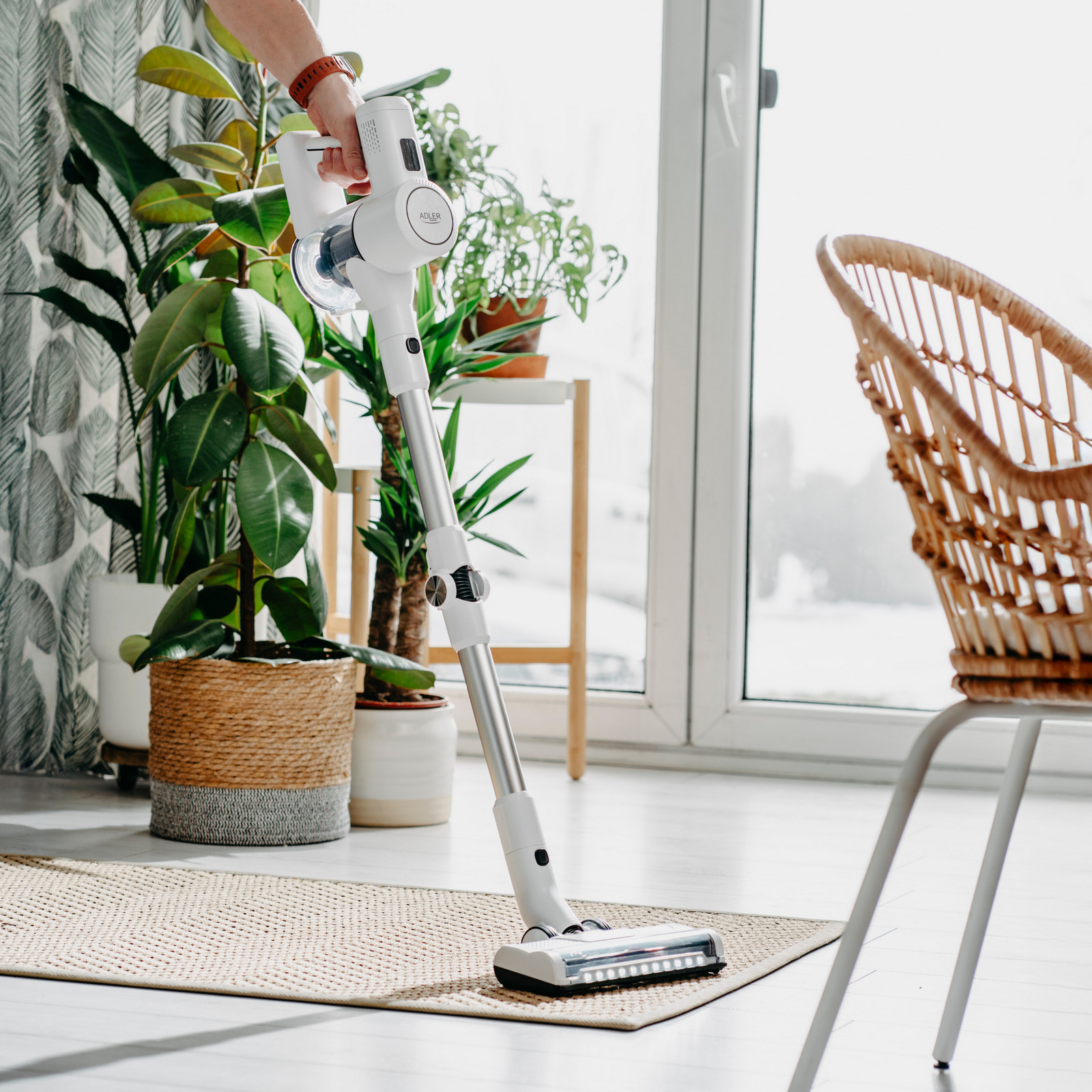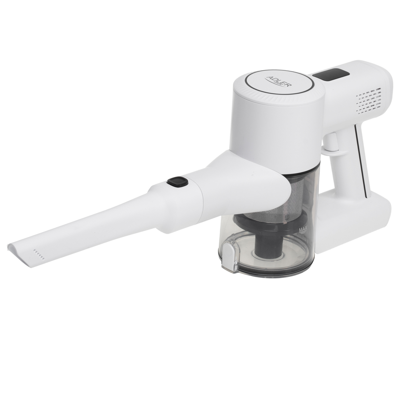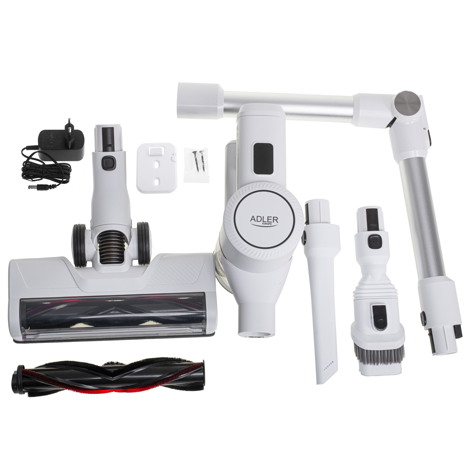 Tyčový a ruční vysavač 2 v 1. Akumulátor 22 V, doba provozu na jedno nabití až 35 minut. Doba nabíjení akumulátoru cca 4,5 hodiny. Motor 350 W. LED displej, signalizující stav baterie a výkonu. 3 úrovně sacího výkonu. Epa filtr 11, LED diody pro osvětlení vysávané plochy. Objem p celý popisrachové nádoby 0,5 l. Příslušenství: rotační turbokartáč, flexibilním kloubem, štěrbinová hubice, kartáček + oválná štěrbinová hubice 2 v 1, kovová sací trubka s flexibilním kloubem, adaptér 100-240 V, plastový úchyt na zeď. Hmotnost 1,95 kg.
