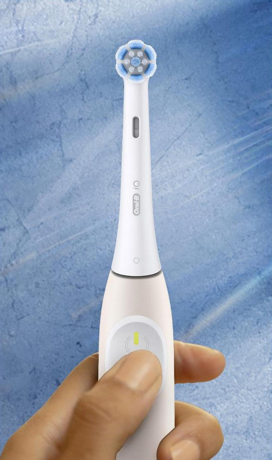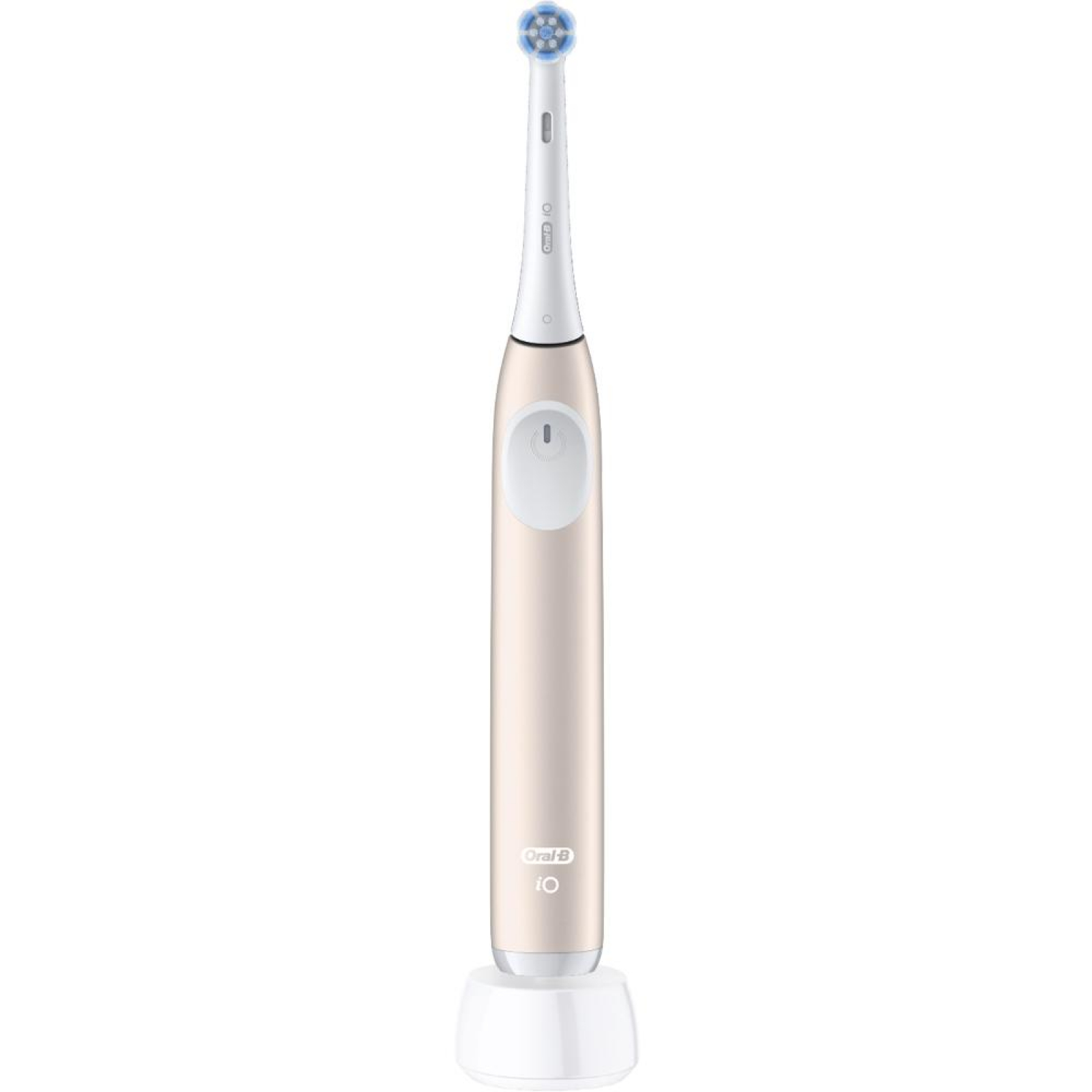 Elektrický zubní kartáček s moderní magnetickou technologií, jemnými mikrovibracemi a kulatou hlavicí, chrání dásně díky automatickému senzoru tlaku, který při příliš silném přítlaku zpomalí otáčky a rozsvítí červené světlo, 3 režimy čištění – jemný, šetrný a každodenní, 2minutov celý popisý časovač s upozorněním každých 30 sekund pro rovnoměrné čištění, tichý chod a jednoduchým ovládáním jedním tlačítkem, ergonomická rukojeť s protiskluzovým povrchem je vodotěsná a pohodlná na držení, výkonný akumulátorí s dlouhou výdrží a indikátorem nízkého nabití, součástí balení je jedna hlavice Oral-B iO, kompatibilní se všemi hlavicemi řady Oral-B iO včetně Ultimate Clean a Gentle Care, doporučená výměna hlavice je každé tři měsíce, barva růžová.