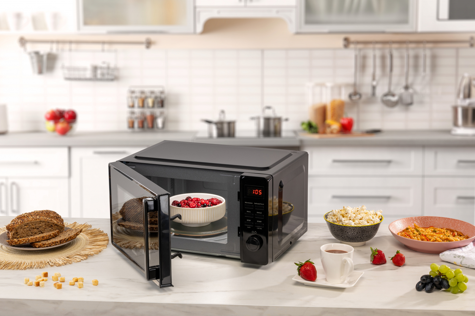Volně stojící, objem 20 litrů, elektronické ovládání, výkon mikrovln 700 W, otočný talíř o průměru 245 mm, 5 úrovní výkonu, rozmrazování, vnitřní osvětlení, zvuková signalizace konce ohřevu, časovač do 60 minut, černé provedení.