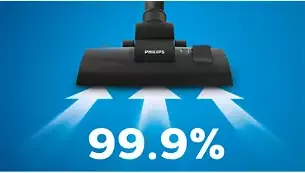 Vysoce výkonná hubice a vysoký sací výkon se postarají o vysátí 99,9 % jemných částeček prachu*.