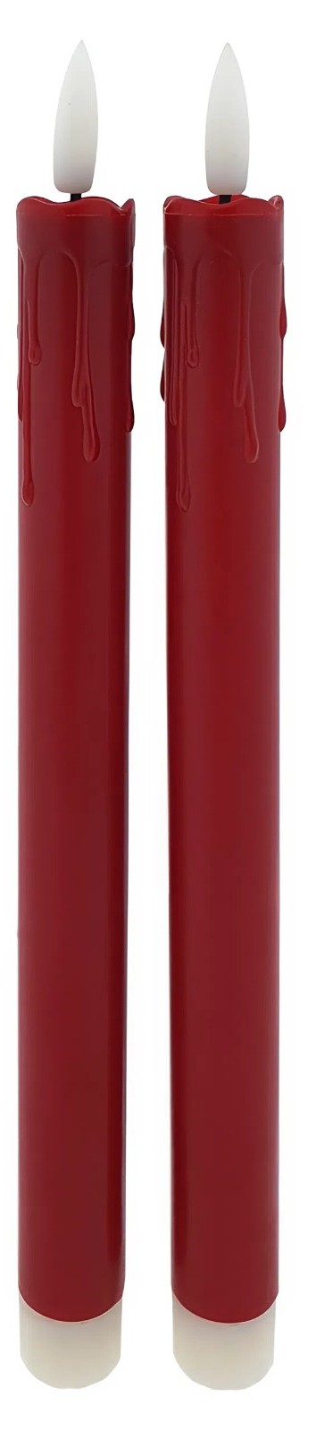 2 svíčky LED imitující plamen 25,5 x 2,2 cm, červená
