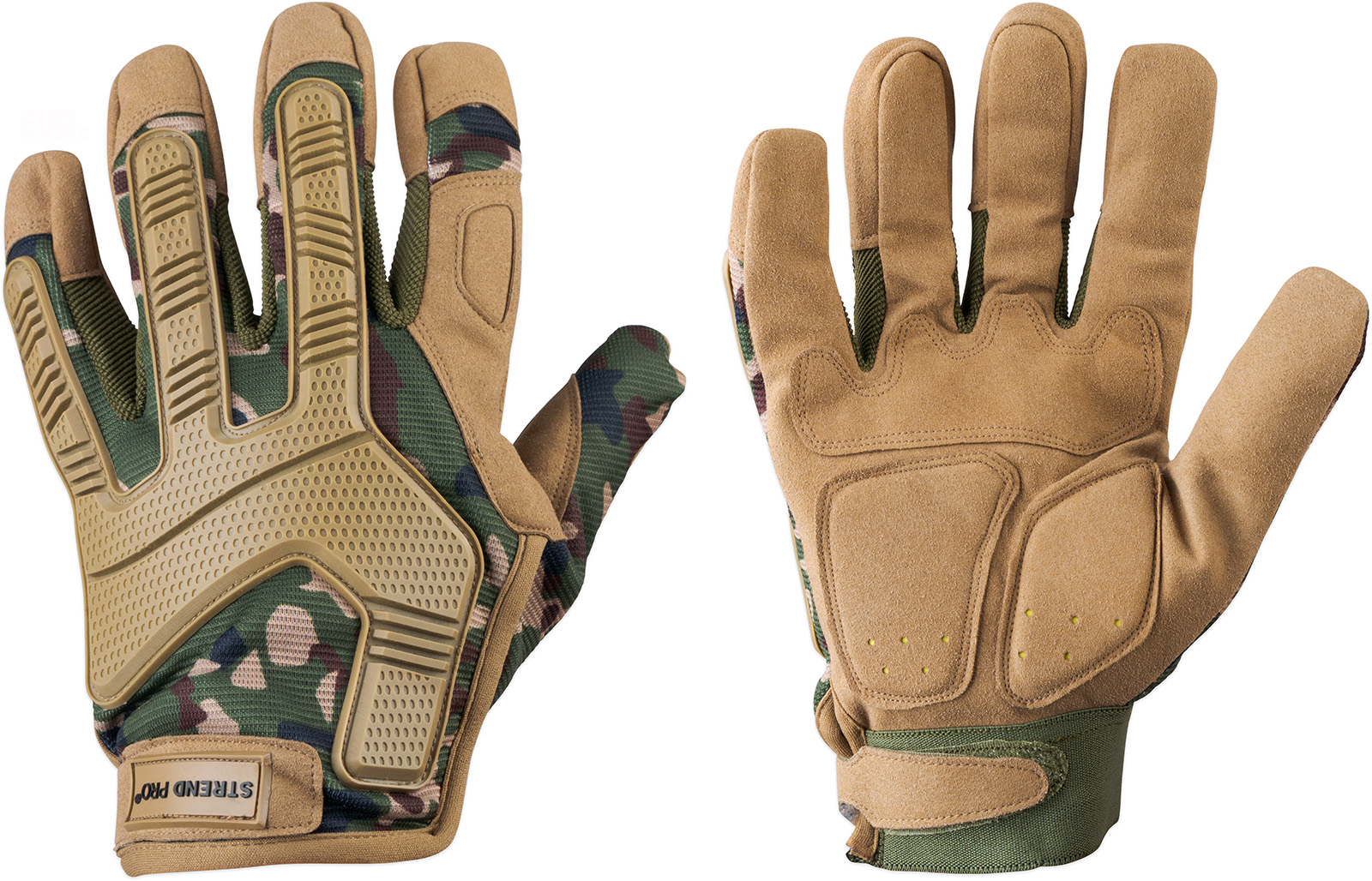 Pracovní rukavice nabízejí spolehlivou ochranu a pohodlí při práci i volnočasových aktivitách. Jsou vyrobené z odolných materiálů, umělé kůže a spandexu, termoplastická guma na hřbetu, polstrovaná dlaň se zvýšenou voděodolností, elastická manžeta se suchým zipem, které dobře chrá celý popisní před oděrem, nečistotami a běžným mechanickým opotřebením. Ergonomický střih zajišťuje příjemné nošení a cit v prstech i při delším používání. Jistý úchop při manipulaci s nástroji a materiálem. Stylový maskáčový design oceníte při práci na stavbě, v dílně, na zahradě i při outdoorových činnostech. Velikost 10"