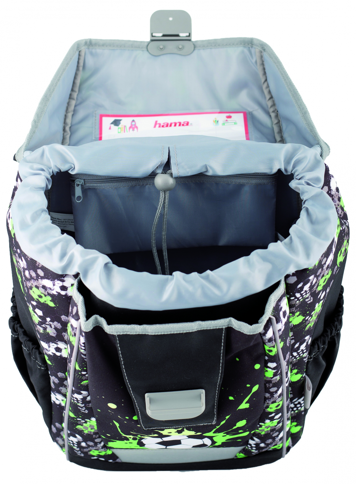 Extrémně lehká aktovka váží pouhých 0,75 kg. Ergonomicky tvarovaná záda s měkkým polstrováním. Nastavitelné, polstrované popruhy jsou vybavené reflexními plochami pro zvýšenou bezpečnost dětí na cestě do školy. Zavírací mechanismus s odrazkou a dostatek reflexních prvků zajišťují celý popis viditelnost aktovky ze všech stran. Dvě postranní kapsy: Ideální pro láhev na pití, případná vylitá tekutina nepoškodí obsah aktovky díky malému otvoru ve spodní části kapes. Zadní přihrádka: Určena pro těžší předměty jako učebnice, rovnoměrně rozloží hmotnost obsahu. Vnitřní kapsy: Kapsa na svačinový box, penál nebo drobnosti a malou zipovou kapsu na klíče či jiné osobní věci. Aktovka je vyrobena z kvalitního polyesterového materiálu. Vnitřní objem 15,7 litrů. Pevné dno s nožkami poskytuje stabilitu a ochranu před vlhkostí a špínou. Rozměry 34,5 x 28 x 17 cm.
