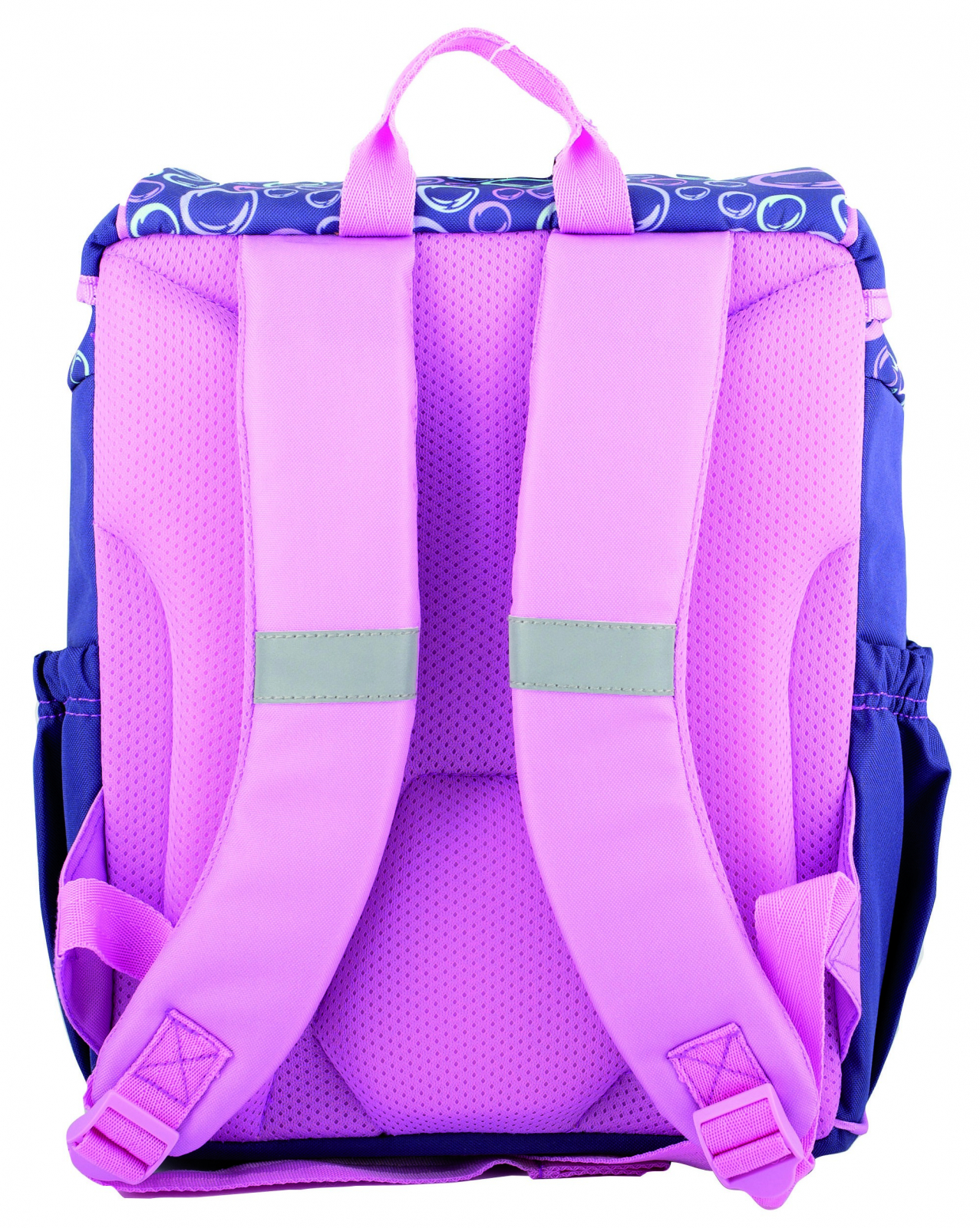 Extrémně lehká aktovka váží pouhých 0,75 kg. Ergonomicky tvarovaná záda s měkkým polstrováním. Nastavitelné, polstrované popruhy jsou vybavené reflexními plochami pro zvýšenou bezpečnost dětí na cestě do školy. Zavírací mechanismus s odrazkou a dostatek reflexních prvků zajišťují celý popis viditelnost aktovky ze všech stran. Dvě postranní kapsy: Ideální pro láhev na pití, případná vylitá tekutina nepoškodí obsah aktovky díky malému otvoru ve spodní části kapes. Zadní přihrádka: Určena pro těžší předměty jako učebnice, rovnoměrně rozloží hmotnost obsahu. Vnitřní kapsy: Kapsa na svačinový box, penál nebo drobnosti a malou zipovou kapsu na klíče či jiné osobní věci. Aktovka je vyrobena z kvalitního polyesterového materiálu. Vnitřní objem 15,7 litrů. Pevné dno s nožkami poskytuje stabilitu a ochranu před vlhkostí a špínou. Rozměry 34,5 x 28 x 17 cm.