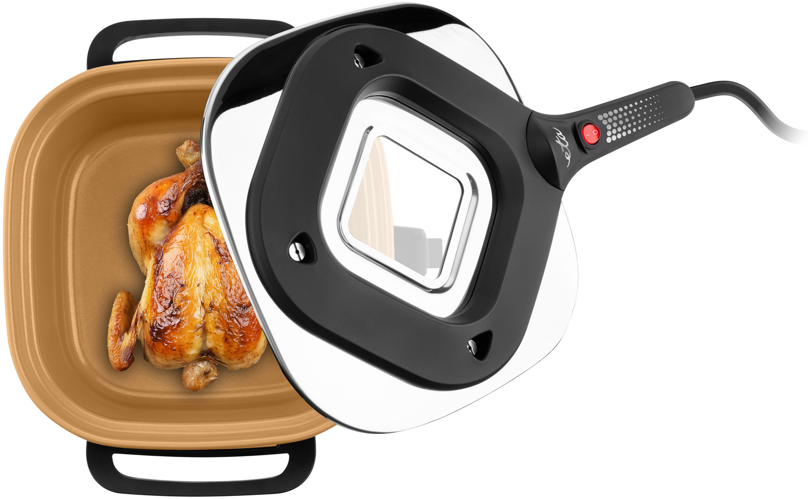 ETA Pečenka využívá speciálně navržené topné těleso o příkonu pouhých 475 W v horní části víka. Díky tomu dochází k rovnoměrnému rozložení tepla a každá porce je perfektně propečená bez nutnosti jídlo otáčet. Ve srovnání s klasickou troubou spotřebuje až o 80 % méně energie, což se pozitivně odrazí na vašich účtech za elektřinu. Praktické víko je vybaveno skleněným průzorem pro snadnou kontrolu připravovaného jídla a nechybí ani ventilační otvory pro optimální odvod páry.