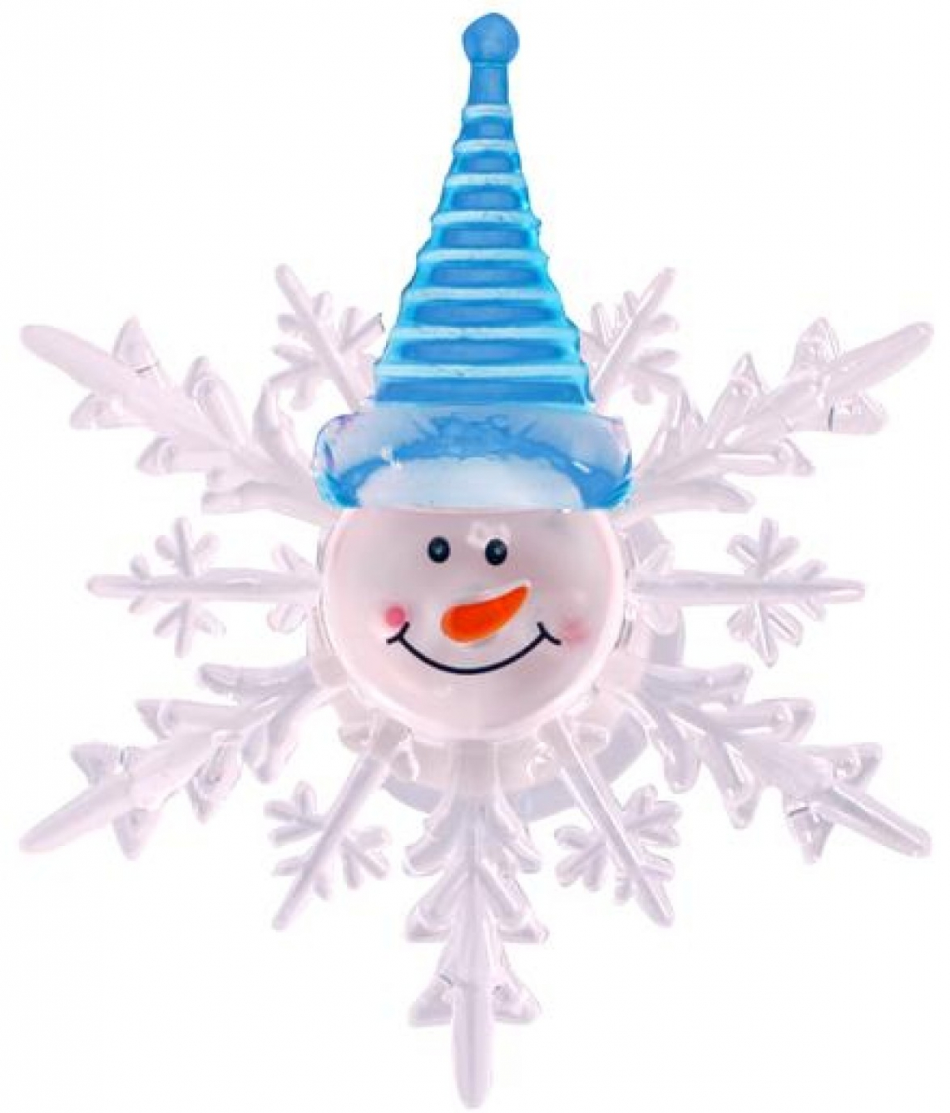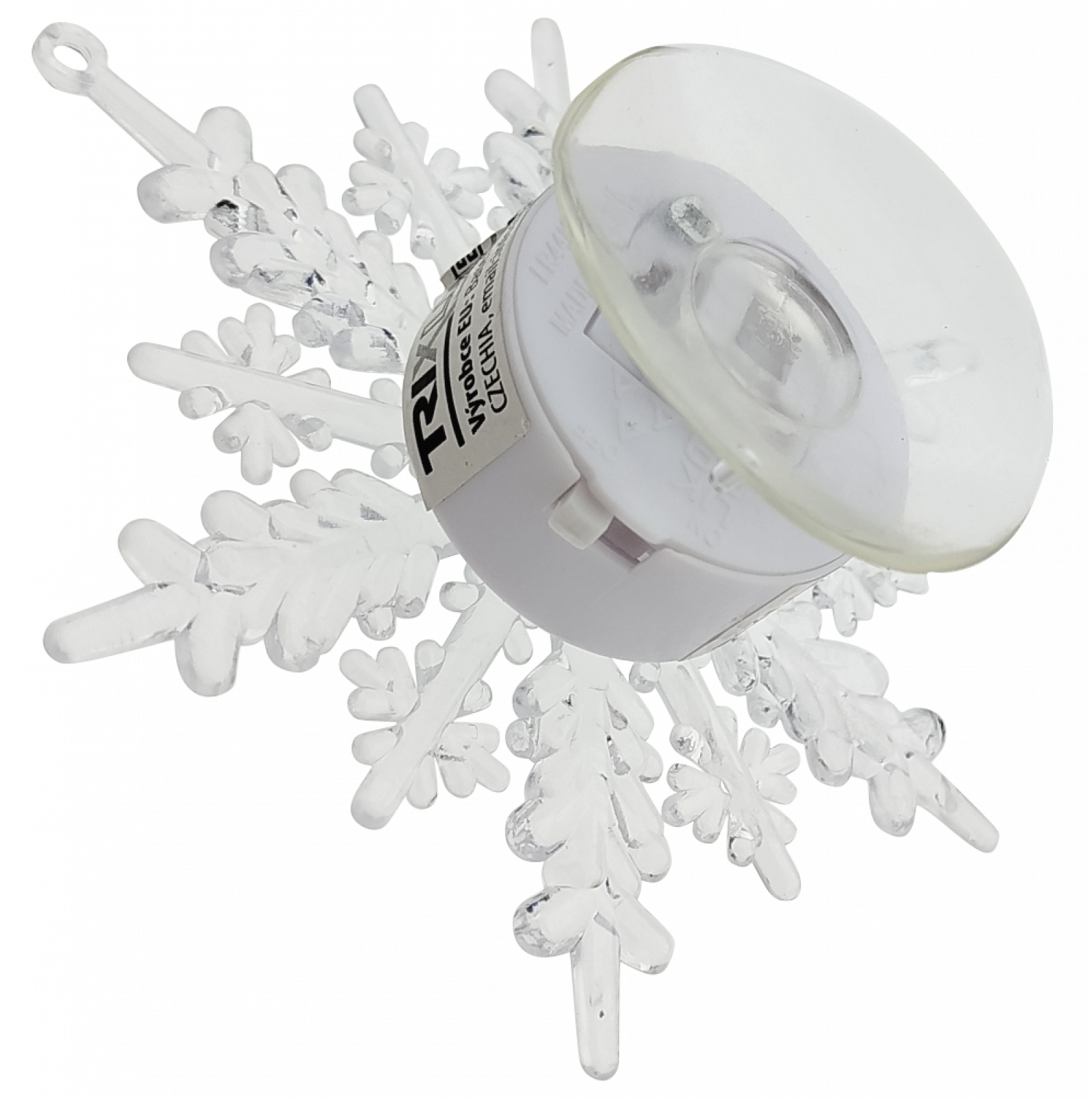 10cm sněhová vločka s přísavkou na okno nebo jiné hladké povrchy, LED dioda zajišťuje plynulé prolínání barev (RGB). Dekorace je dodávána vč. baterií 3 x LR44 a vybavena vypínačem. Různé varianty dodáváme dle skladové dostupnosti.