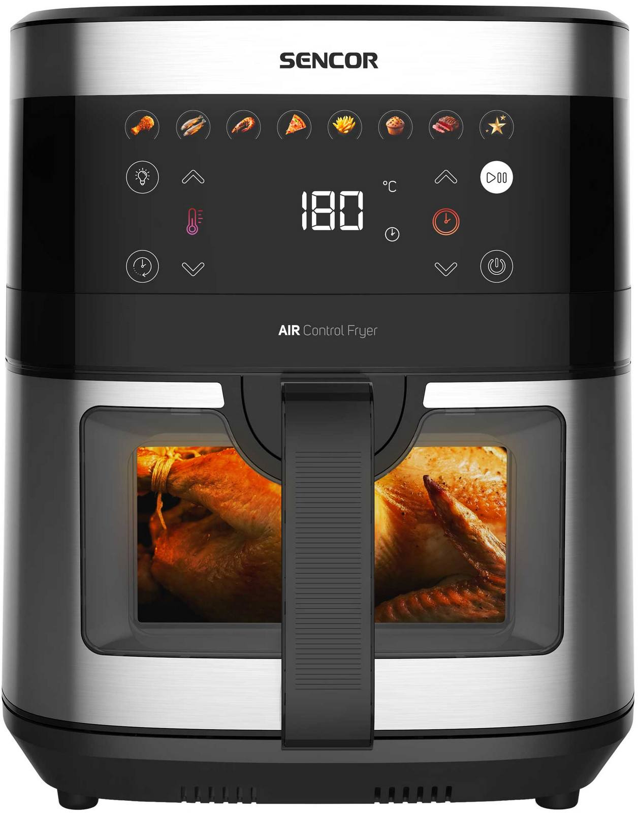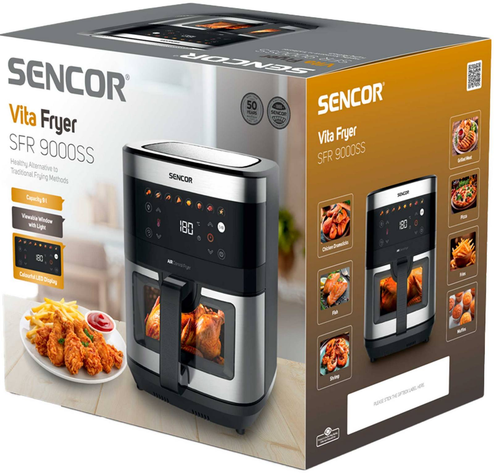 Rodinná hostina bez čekáníS horkovzdušnou fritézou SFR 9000SS připravíte rychlou a chutnou večeři pro celou rodinu nebo partu kamarádů, to vše díky velkorysému objemu 9 litrů. Průhledné sklo s vnitřním osvětlením vám umožní sledovat průběh pečení bez nutnosti otevírání fritézy a narušování přípravy. |