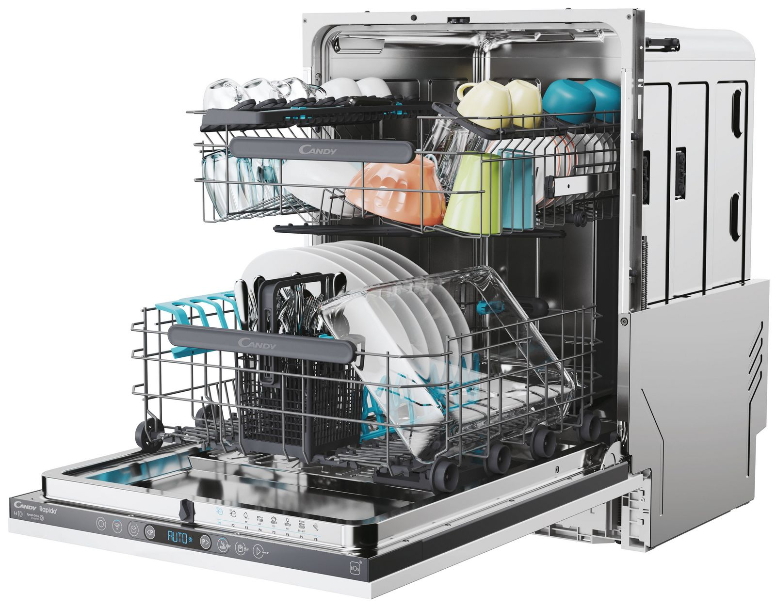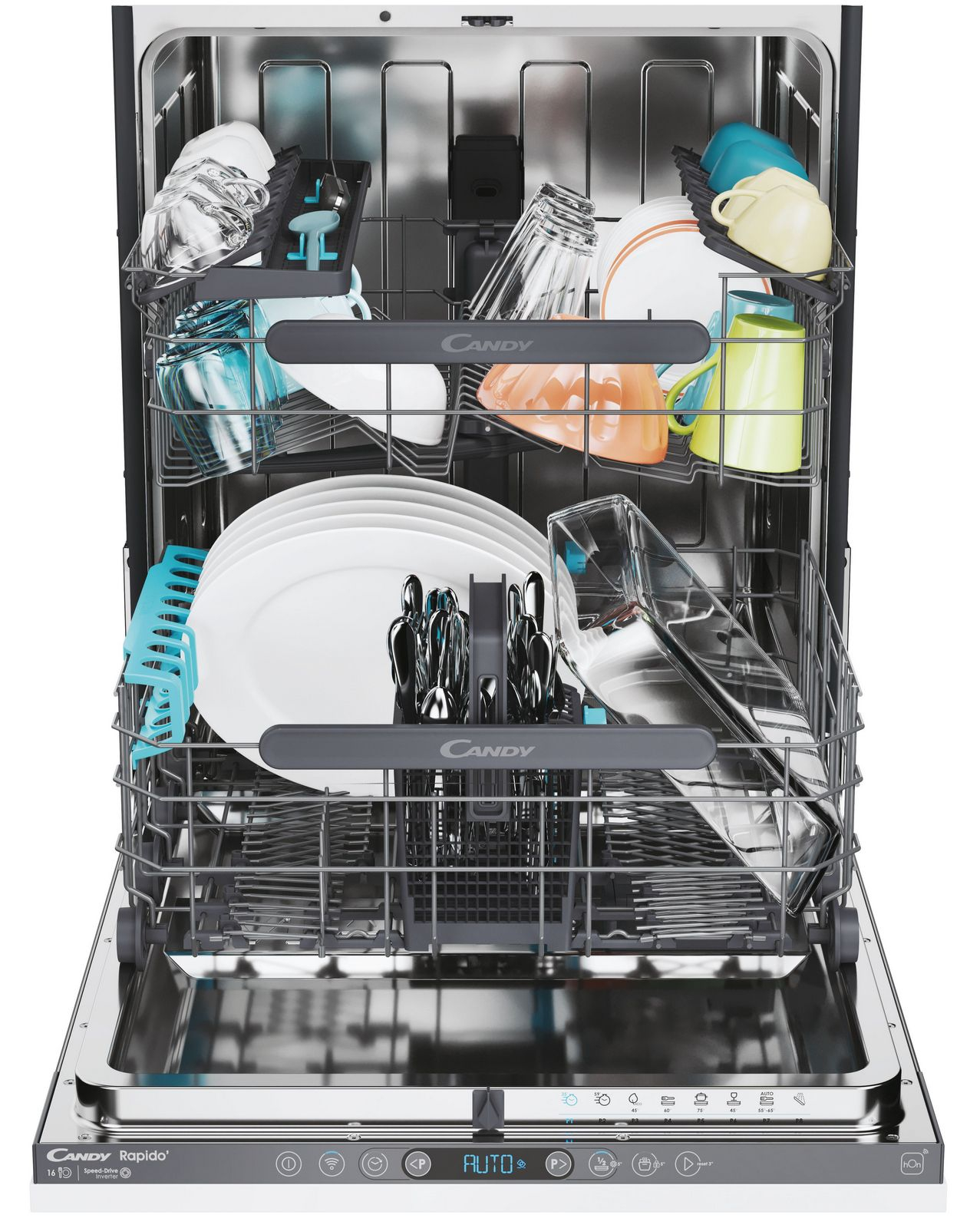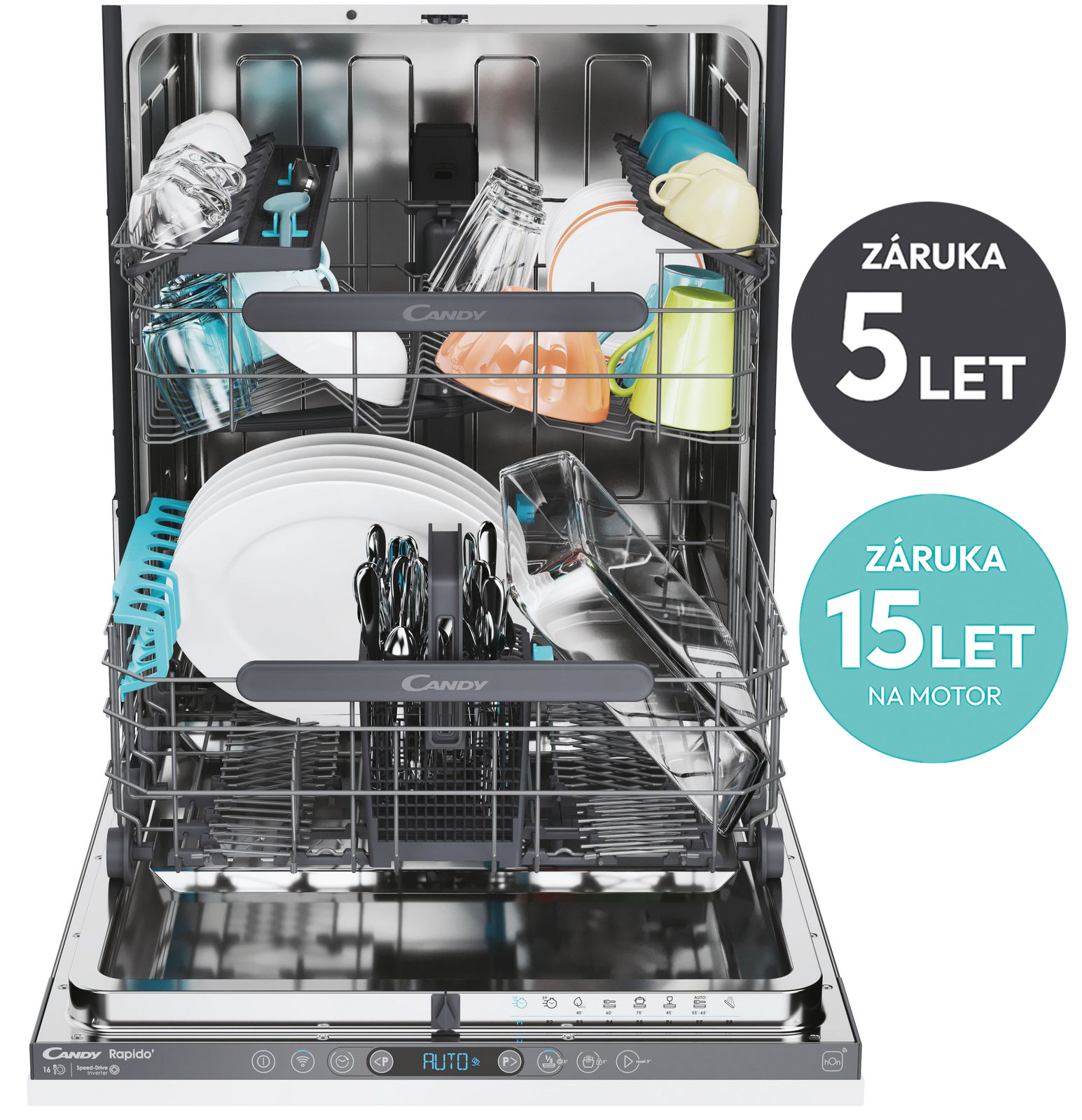 Vestavná myčka nádobí o šíři 60 cm s kapacitou na 16 sad nádobí v energetické třídě C, 8 programů + 20 extra cyklů v aplikaci hOn kterou propojíte přes Wi-Fi + Bluetooth, odložený start, automatické otevírání dvířek po skončení cyklu, 1/2 nápň, 2 koše, možnost polohování horního celý popiskoše; sklopitelné držáky šálků v horním koši, ochrana proti přetečení, invertorový motor BLDC – tichý a efektivní.