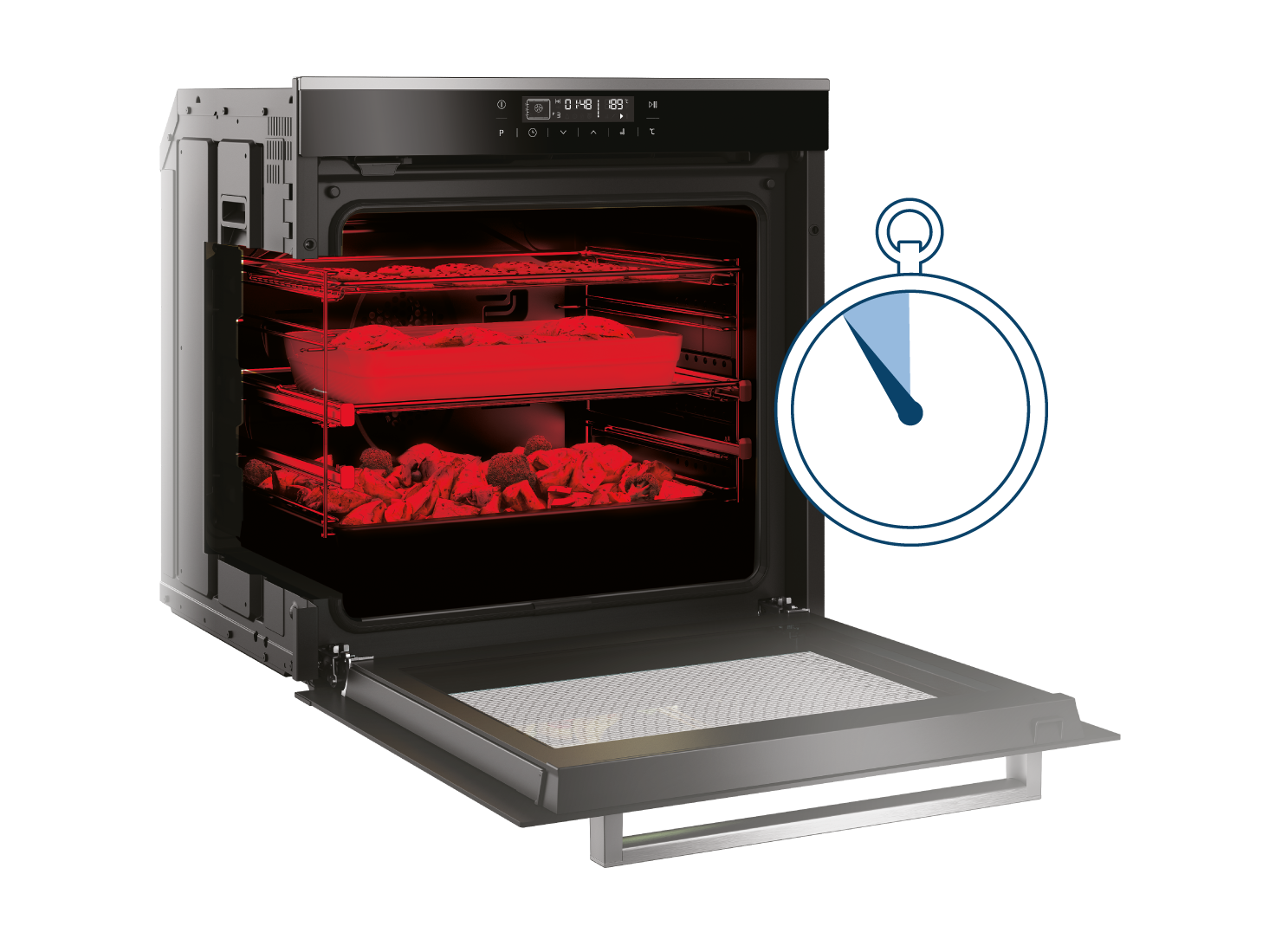 Chcete zjistit, v jaké fázi je pečení, ale nechcete otevírat dvířka, aby neuniklo teplo? Halogenové osvětlení vám pomůže nahlédnout do trouby, takže můžete své kulinářské kreace sledovat přes zavřená dvířka.