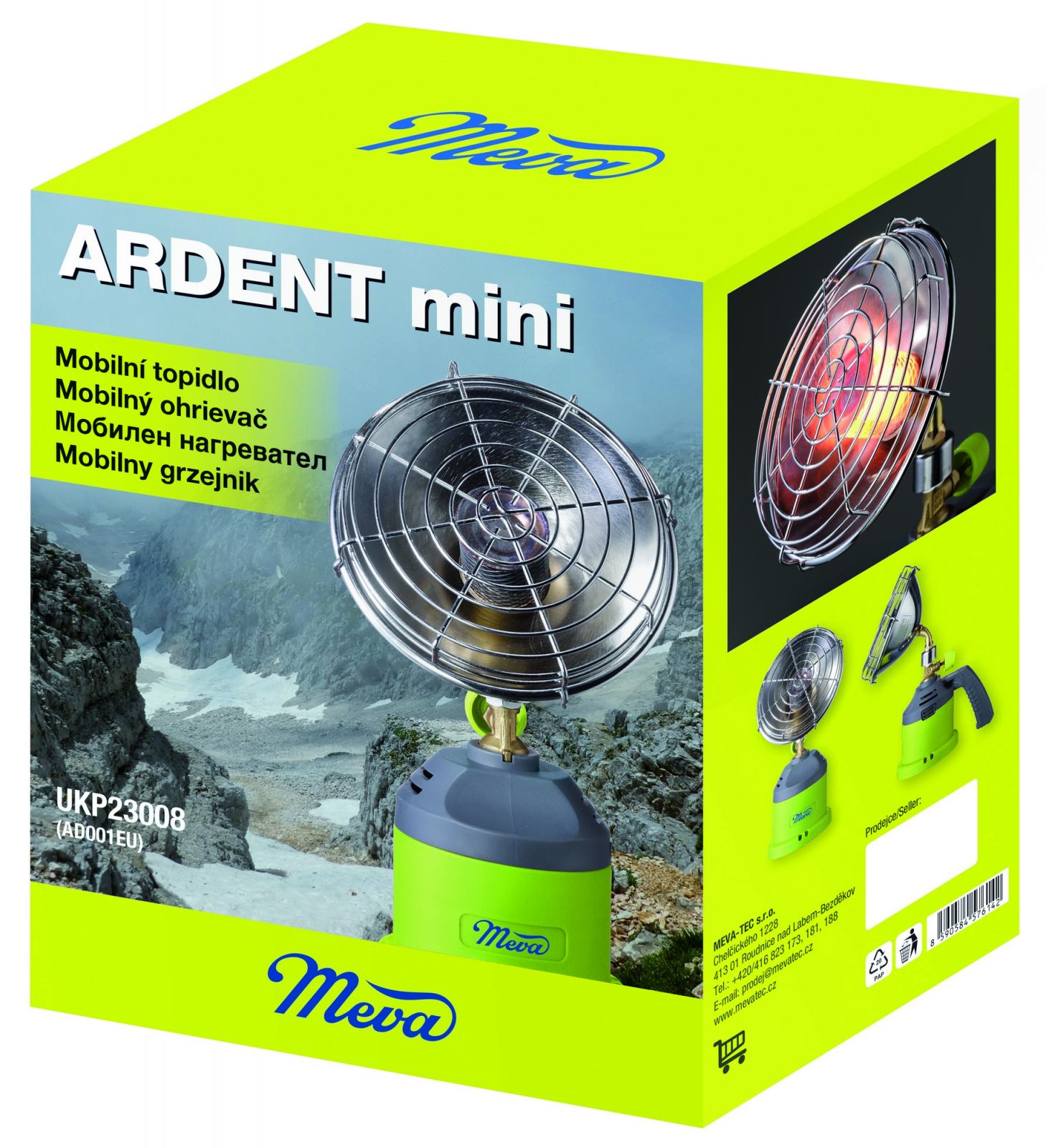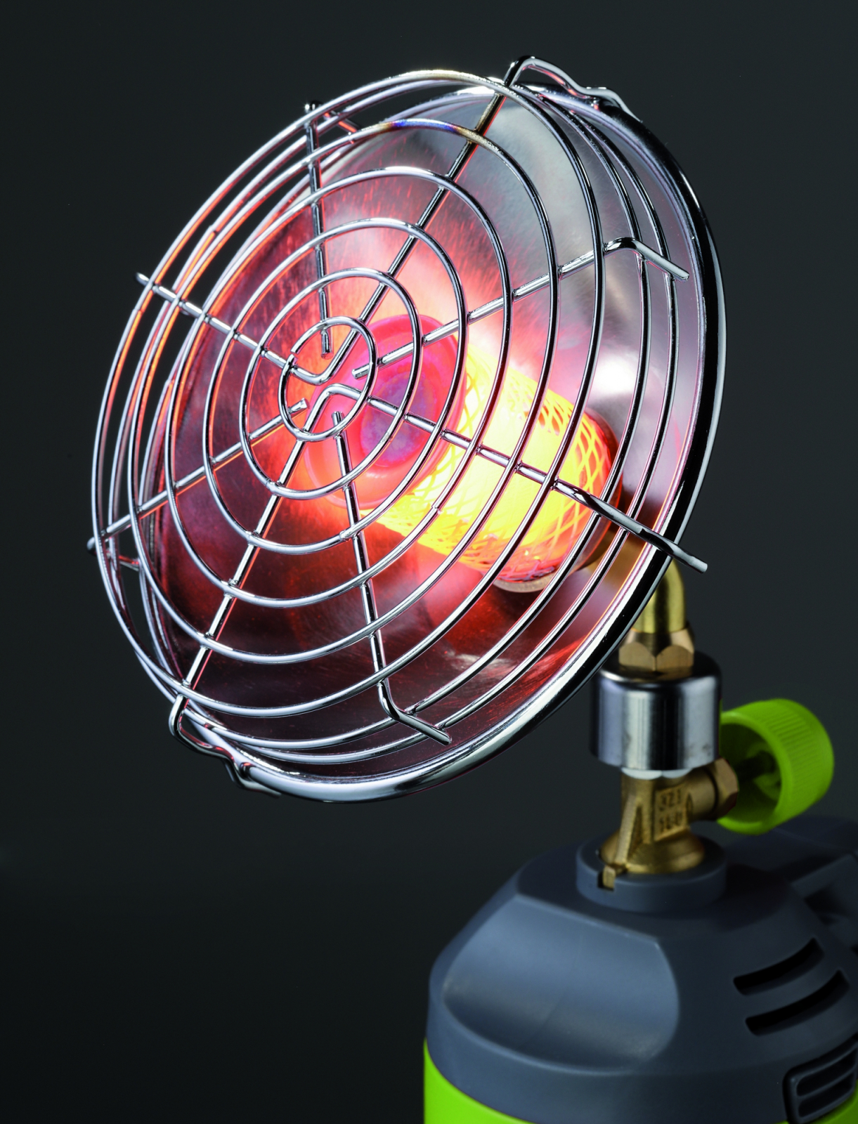 Mobilní teplomet s odolnou kovovou punčoškou slouží ke zvýšení tepelné pohody ve venkovním prostředí. Kempování, rybaření, myslivost atd. Výkon 1 kW. Plynulá regulace výkonu. Výrobek používá jednorázové propichovací kartuše 190 g (typ UKP02001). Kartuš vydrží 2 hodiny 30 minut př celý popisi plném výkonu. Maximální spotřeba plynu 76 g/h.