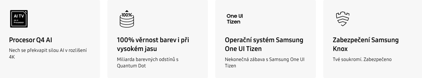 Procesor Samsung AI pomáhá optimalizovat zážitek z obrazu a zvuku na podmanivé rozlišení 4K, které oceníš při sledování oblíbeného obsahu, hraní her i streamování.