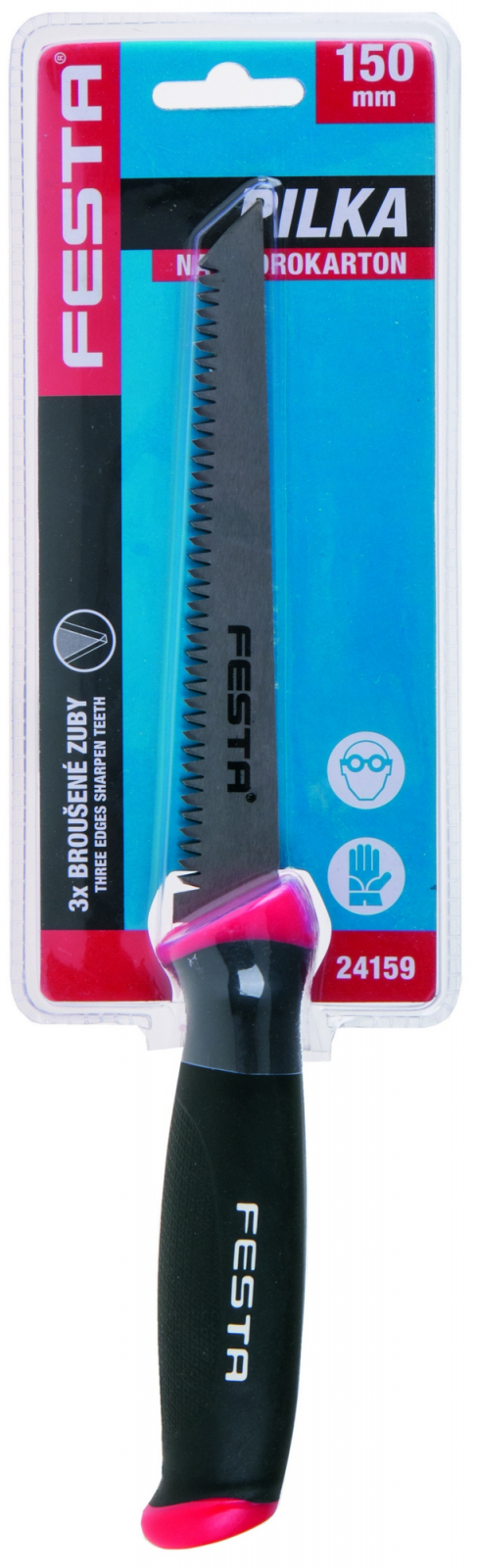 Délka pilového plátku 150 mm, ABS rukojeť s měkčenou TPR gumou. Vysokofrekvenčně kalené trojbroušené zuby, tvrdost: 47-52 HRC. Ozubení 7 TPI. Celková délka včetně rukojeti 300 mm.