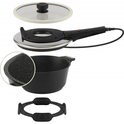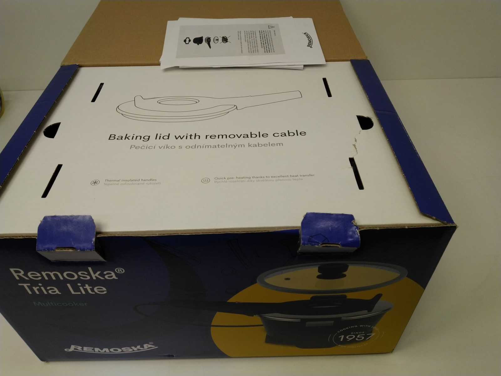 Elektrická remoska, využitelný objem 4.5 litru pro pečení, využitelný objem 3 l pro pečení, 4,5 l pro vaření, třívrstvá nepřilnavá povrchová úprava, hrnec se skleněnou poklicí lze použít na všechny druhy sporáku včetně indukce, úsporné pečení se spotřebou pouhých 610 W, ideální t celý popiseplota pro pečení: 160 – 180 °C, horní průměr hrnce 28 cm, výška hrnce 13 cm, vhodné do myčky: pečicí hrnec a skleněná poklice, příkon 610 W, napětí: 220–240 V~ / 50–60 Hz, hmotnost 5,4 kg, obsah balení: pečicí víko, skleněná poklice, pečicí hrnec, odnímatelný kabel, stojan.