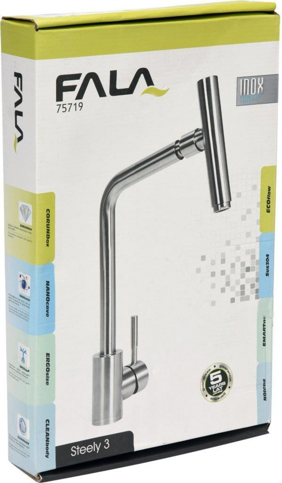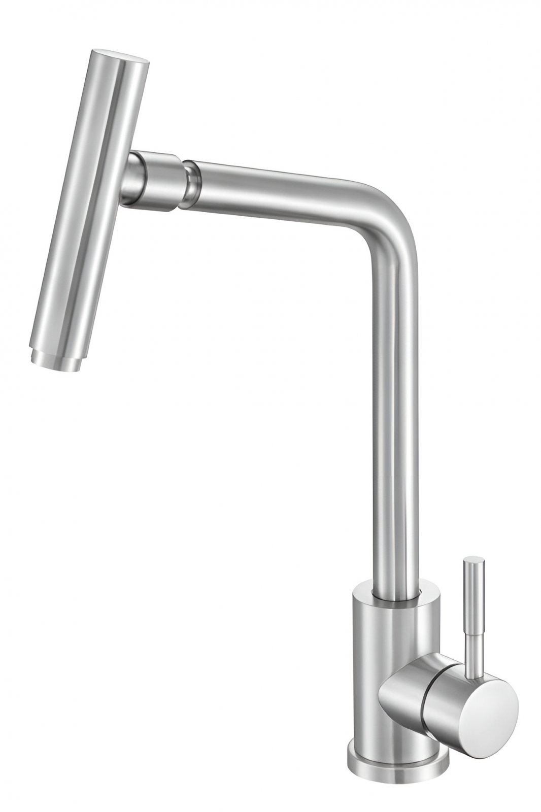 Dřezová stojánková baterie s nastavitelnou tryskou, masivní provedení z nerezavějící oceli SUS 304, kvalitní perlátor švýcarské značky Neoperl (s přisáváním vzduchu šetří spotřebu vody o polovinu), výška včetně směrové trysky 40 cm, keramická kartuše s dlouhou životností, průměr celý popiskartuše 35 mm, záruka 5 na těsnost, 2 roky na povrchové vady. Obsah balení: Baterie, montážní sada pro montáž bez použití nářadí, 2x připojovací hadice s těsněním.