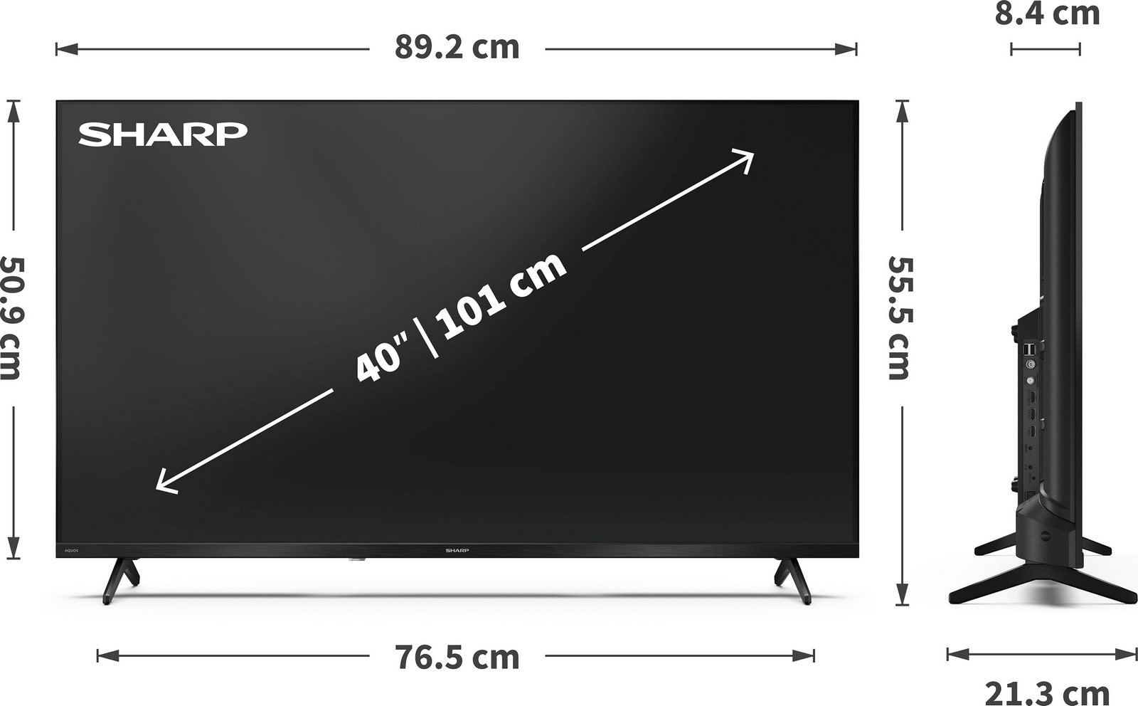 QLED televize Sharp 40HF3265E s úhlopříčkou 40" (101 cm) v elegantním bezrámovém designu vás okouzlí skvělými vizuálními zážitky. Výjimečně ostrý a kvalitní obraz u vašeho oblíbeného filmu či seriálu zajišťuje rozlišení 1920 × 1080 px. Televize disponuje audio soustavou s výkonem 2× 8 W. Vysoký dynamický rozsah HDR10 spolu s podporou formátu HLG vylepšuje jas a zobrazení barev.