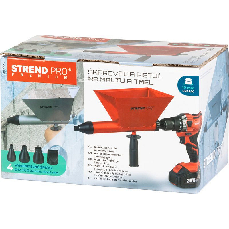 Usnadněte si práci s maltou, tmely a spárovacími hmotami pomocí této pistole, která je ideální pro vyplňování spár mezi cihlami, tvárnicemi i přírodním kamenem. Zařízení je poháněno akumulátorovou vrtačkou nebo šroubovákem, což umožňuje rychlou, plynulou a přesnou aplikaci materi celý popisálu přímo do spár bez zbytečného odpadu a nepořádku. Robustní konstrukce zajišťuje dlouhou životnost i při náročném používání, ergonomické provedení snižuje únavu rukou a vyměnitelné trysky umožňují přizpůsobení různým typům prací. Objem nádoby je 3 litry a hmotnost 1,1 kg.