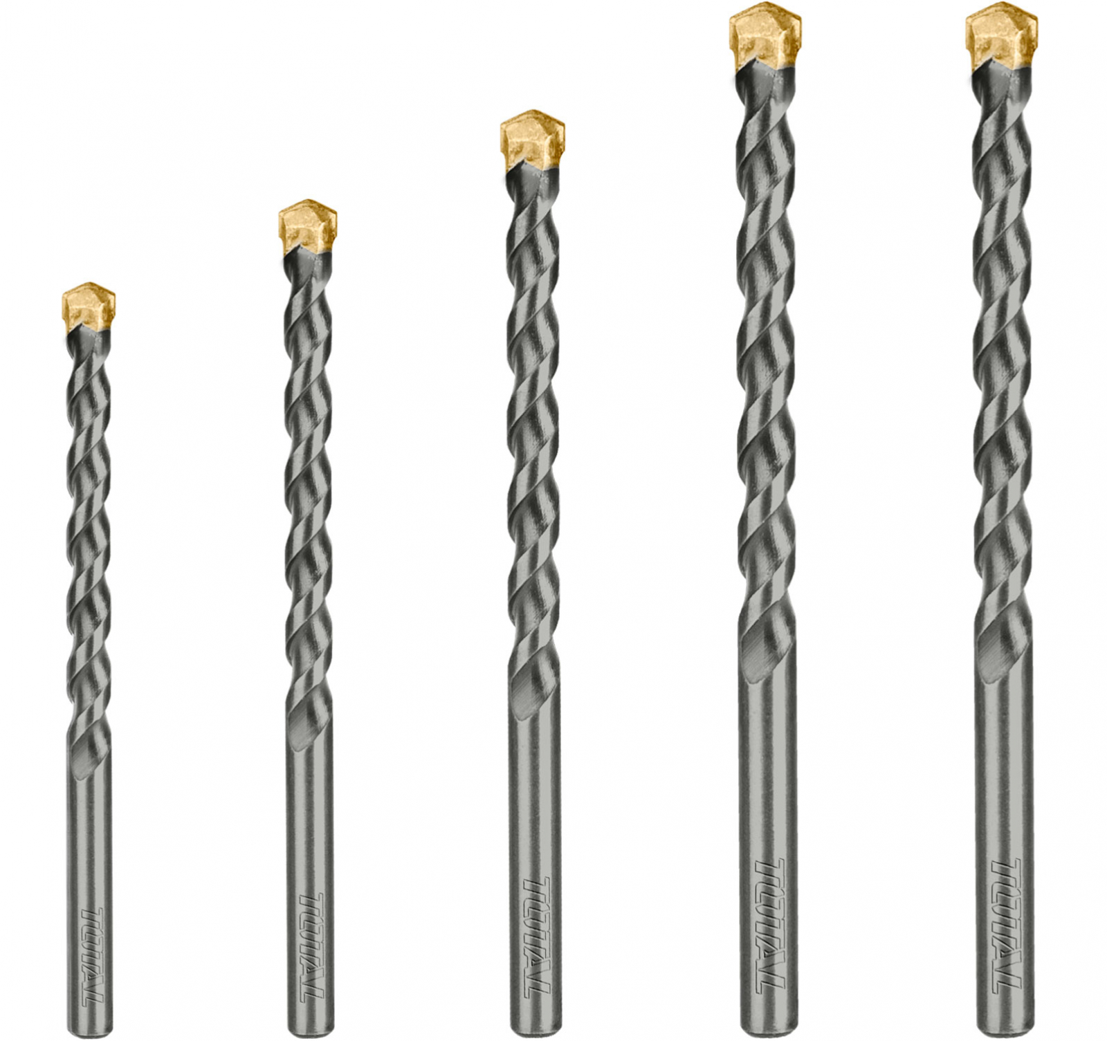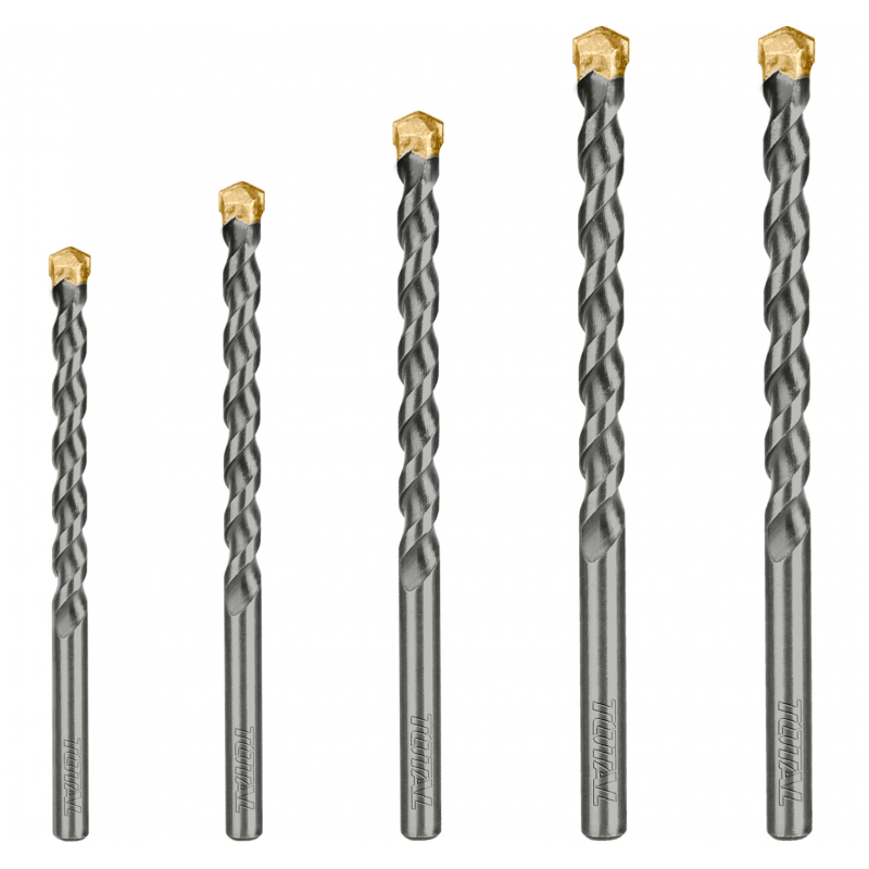 Vrtáky do betonu sada 5 ks, rozměry: 4x75 mm, 5x85 mm, 6x100 mm, 8x120 mm, 10x120 mm. SK plátky.