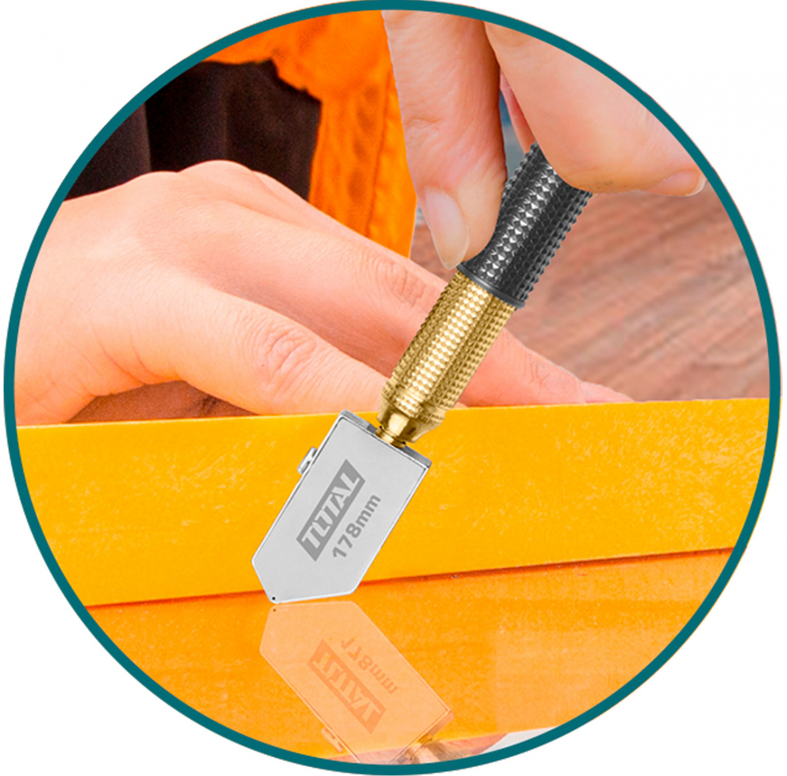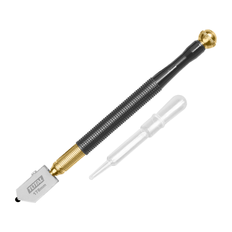 Řezné kolečko z kalené oceli, automatické přimazávání řezu, celokovové provedení, v duté rukojeti je nádržka na řezný olej nebo petrolej, součástí pipeta na plnění. Délka 178 mm.