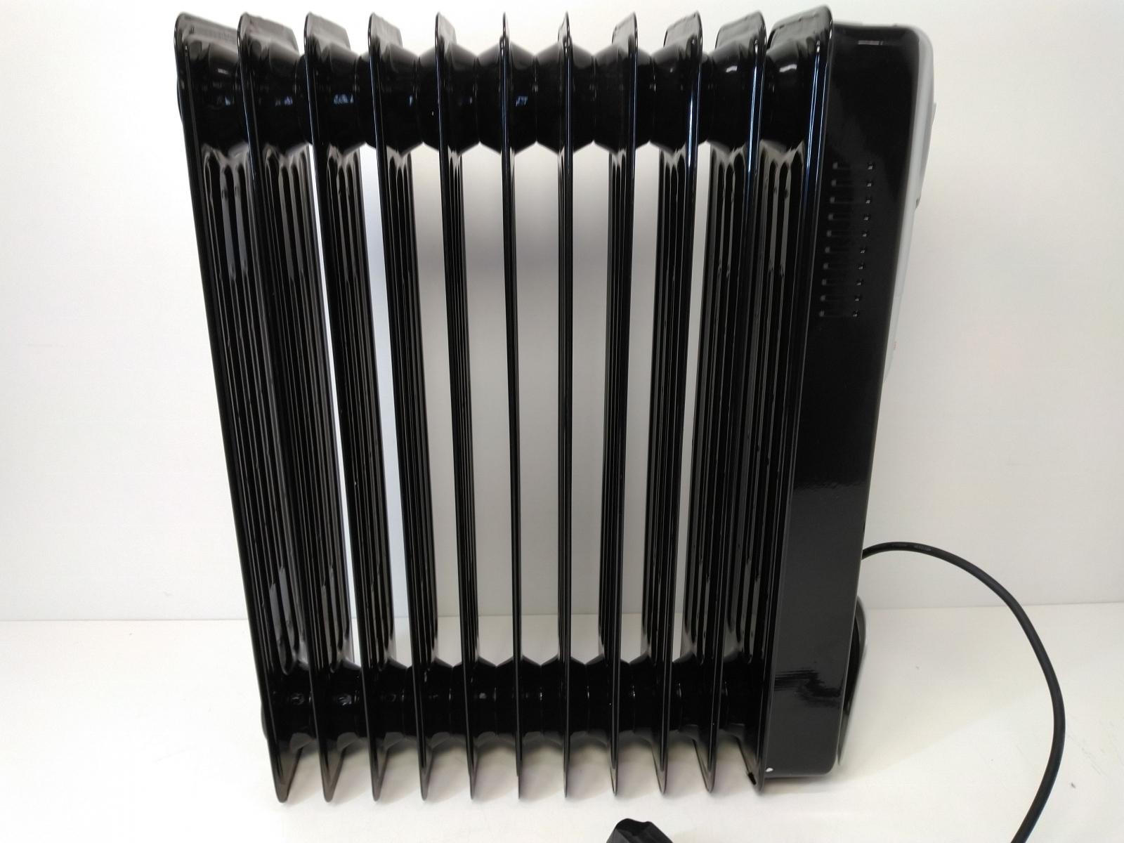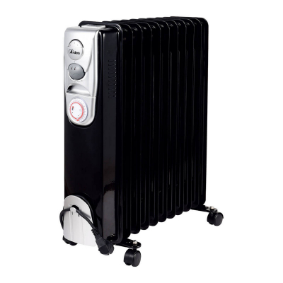 Olejový radiátor s 11 topnými články, příkon 2500 W, 3 úrovně nastavení výkonu (1000 W, 1500 W a 2500 W), 24hodinový programovatelný časovač pro nastavení automatického zapnutí a vypnutí, určen pro prostor do 75 m3, plynule regulovatelný mechanický termostat, světelná indikace pr celý popisovozu, bezpečnostní ochrana proti přehřátí, pádový spínač pro automatické vypnutí při převrhnutí, integrované madlo pro snadné přenášení, pojezdová kolečka, prostor pro navinutí přívodního kabelu, (š x v x h): 240 x 650 x 480 mm, hmotnost 10,83 kg, černé provedení se stříbrnými detaily.
