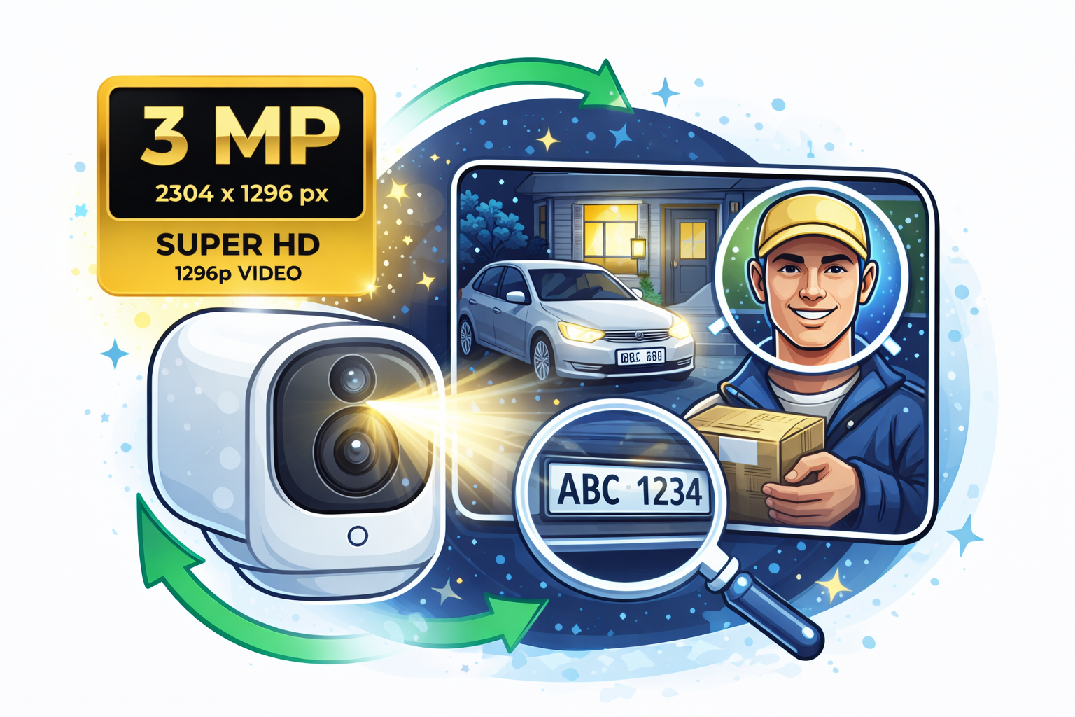Rozlišení 2304 × 1296 px (3 MP) poskytuje výrazně ostřejší obraz než standardní Full HD kamery. Díky tomu snadno rozpoznáte obličeje, detaily oblečení nebo pohyb osob i na větší vzdálenost. Vyšší rozlišení je ideální také pro digitální přiblížení bez výrazné ztráty kvality.