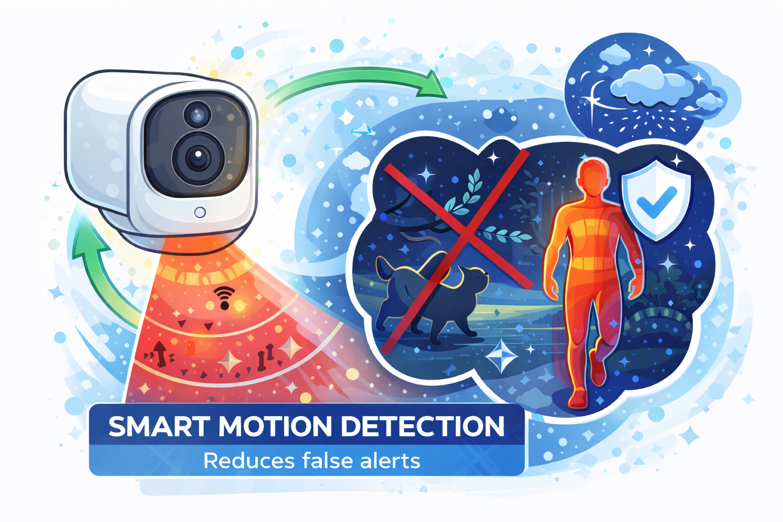 V aplikaci Nedis SmartLife lze nastavit citlivost detekce, detekční zóny i časové plány, takže kamera ignoruje nepodstatné pohyby, jako jsou stíny, déšť nebo pohyb větví. Díky tomu je vhodná i pro domácnosti se zvířaty a běžným provozem kolem domu.