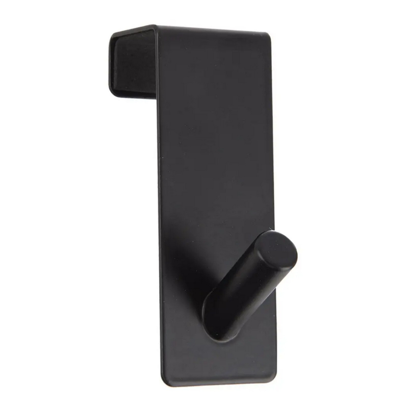 Sada 2 kusů bez nutnosti vrtat, určeno na dveře, čela kuchyňských i koupelnových skříněk jejich tloušťka nepřesahuje 2cm, slouží k zavěšení ručníků, utěrek apod. Materiál kov s povrchovou úpravou, zadní část opatřena měkkou pěnou, rozměry : 5 x 3 x 8cm, barva černá.