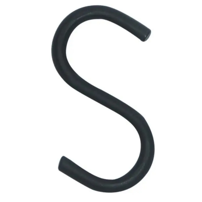 Háček na závěsnou tyč, vyrobeno z kovu se černým nástříkem, rozměr háčku ve tvaru S je 7,5 cm, balení 6ks.