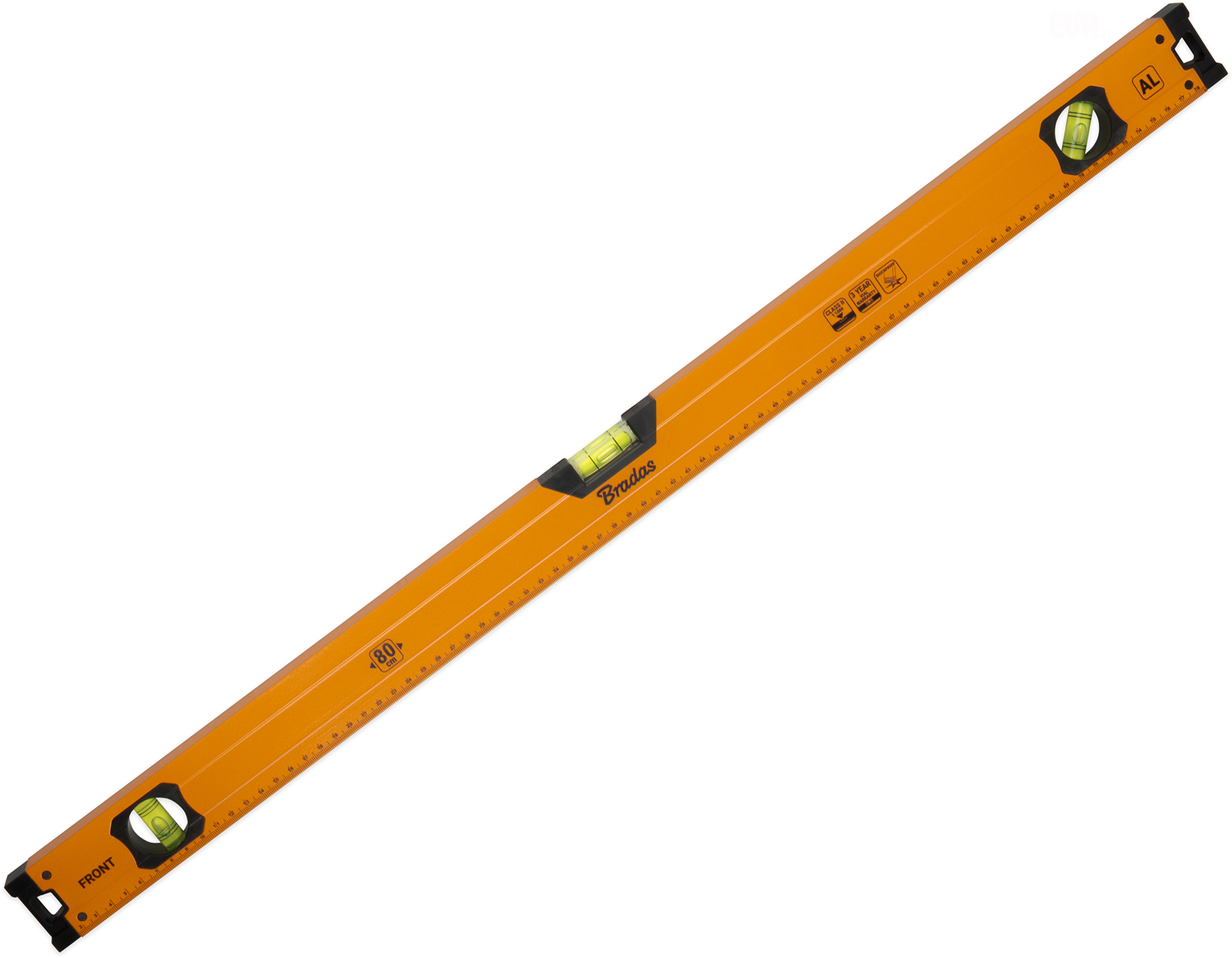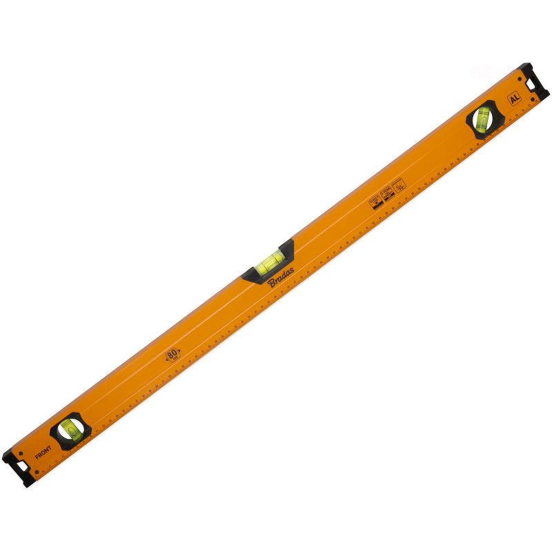 Hliníková vodováha délky 80 cm. Pevný profil tloušťky 0,7 mm zajistí dlouhou životnost a pohodlnou manipulaci. Tři zelené libely umožňují měření v horizontální poloze (180°), vertikální poloze (90°) i pod úhlem 45°. Přesnost měření je 1,0 mm na 1 m (třída II). Odolné plastové kon celý popiscovky chrání vodováhu při nárazech. Díky výrazné oranžové barvě je dobře viditelná na pracovišti. Vhodná pro stavební a rekonstrukční práce, truhlářské a montážní činnosti i běžné dílenské použití.