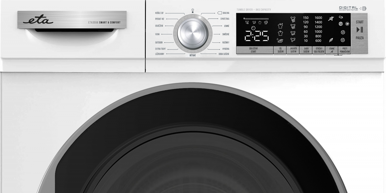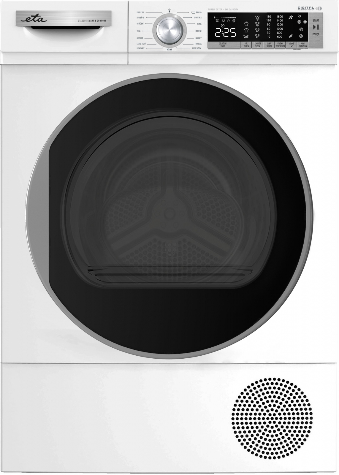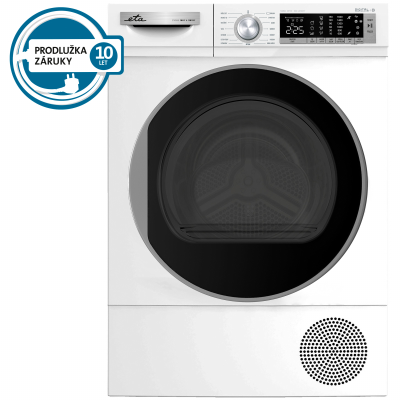 Sušička prádla ETA 355690000C je nedocenitelnou pomocnicí, která šetří váš čas i prostor potřebný pro volné schnutí prádla. Kvalitní digitální invertorový motor se spolu s tepelným čerpadlem postará o účinné, ale šetrné vysušení až 8 kg textilií, a to bez překročení standardů úsporné energetické třídy C.