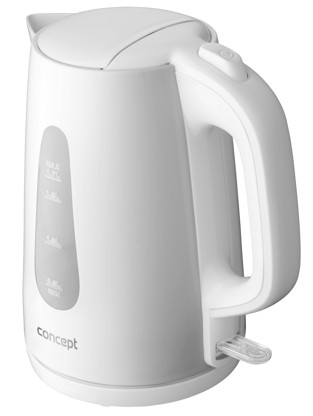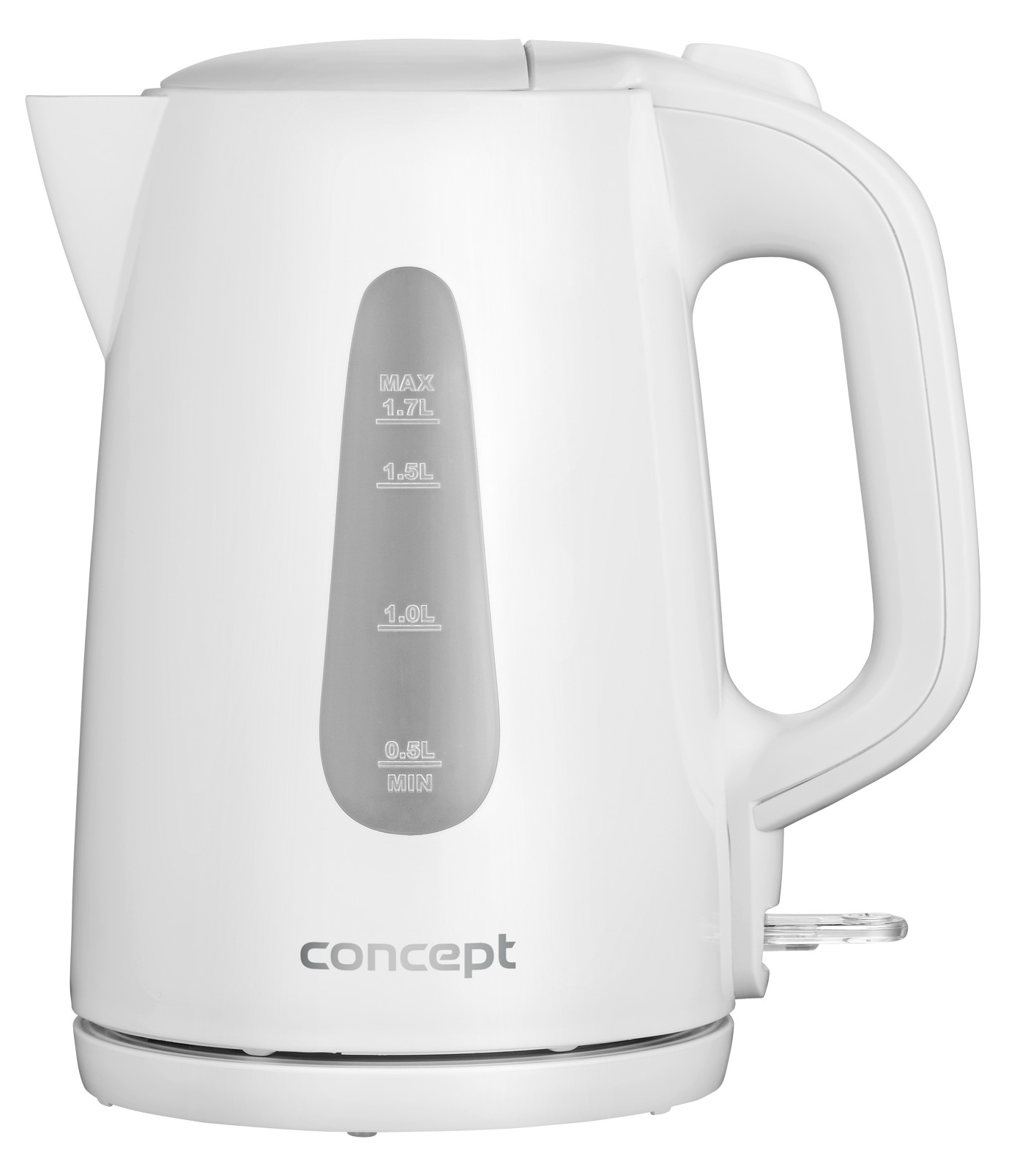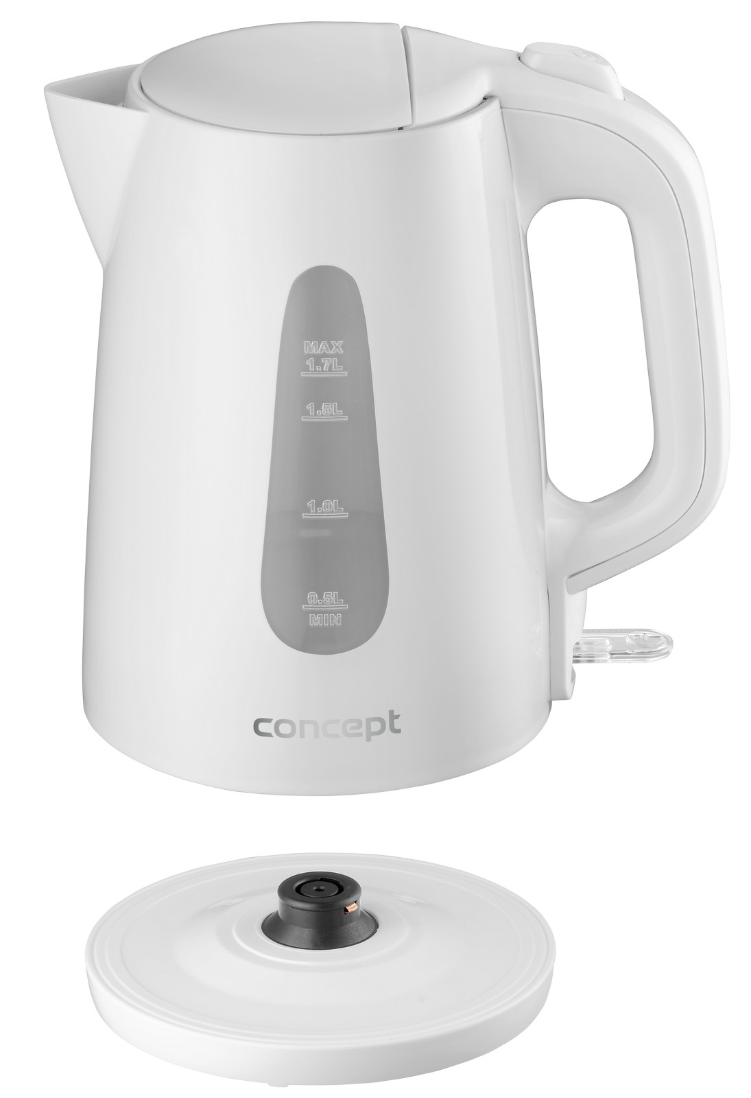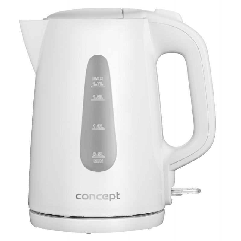 Rychlovarná konvice o objemu 1,7 l, konektor STRIX, vodoznak, filtr pro zachycení vodního kamene, skryté topné těleso, světelná kontrolka provozu ve spínači (červená), otočný 360° středový konektor, pryžové protiskluzové nožičky, podstavec s prostorem pro uschování přívodního kab celý popiselu, bezpečnostní pojistka - automatické vypnutí při zapnutí bez vody, příkon 1850 – 2200 W, délka přívodního kabelu 65 cm, rozměry (š x v x h): 155 x 245 x 217 mm, hmotnost 810 g.