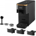 Multikapslový systém 3 v 1 kompatibilní s kapslemi Nespresso® Original*, NESCAFÉ® Dolce Gusto®*, pody E.S.E. nebo 7 gr, mleté kávy, tlak čerpadla 20 bar, volba velikosti šálku (malý, střední, velký), nahřívání 45 sec., automatické vypnutí, nádržka na vodu 1,5 l, LED panel s dotyk celý popisovými tlačítky, odnímatelný podnos se 3 nastavitelnými výškami pro různé velikosti šálků, NTC kontrola teploty, upozornění a program pro odstranění vodního kamene, funkce automatického vypnutí po 15 min, úložný box. Příslušenství: držák na kapsle typu Nespresso® Original*, držák na kapsle typu NESCAFÉ® Dolce Gusto®*, držák na mletou kávu, dva nerezové filtry (pro E.S.E. pody a mletou kávu), pěchovadlo s lžičkou. Rozměry (š x v x h): 125 x 255 x 330 mm.