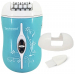 Dámský epilátor dobíjecí, baterie NiMH 3 V, 30–40 minut nepřetržitého používání, doba nabíjení 8 hodin, ergonomický a lehký design, vhodný na cesty, příslušenství: nástavec na epilaci, čisticí štěteček, barva modrá.