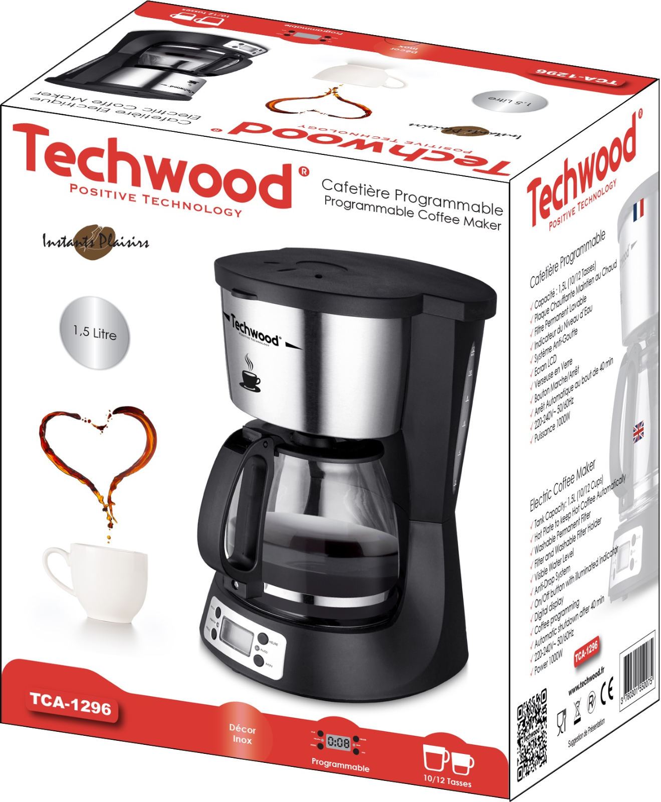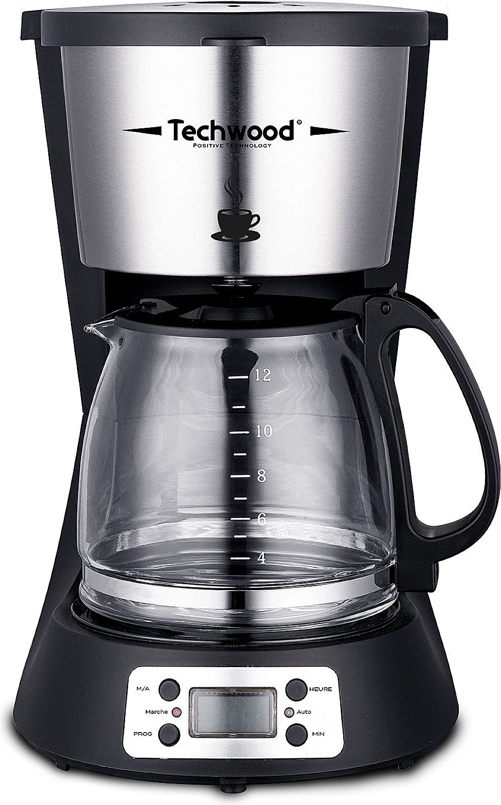 Kávovar s příkonem 1000 W, objem zásobníku na vodu 1,5 l, pro přípravu 12 šálků, skleněná konvice, topná deska pro udržení teploty, systém Anti-Drip - zamezuje odkapávání nápoje při vyjmutí skleněné konvice, vyjímatelný a omyvatelný permanentní filtr, indikátor hladiny vody, LCD celý popisDisplej, automatické vypnutí po 40ti minutách, ukazatel hodin, ochrana proti přehřátí, protiskluzové nožky.