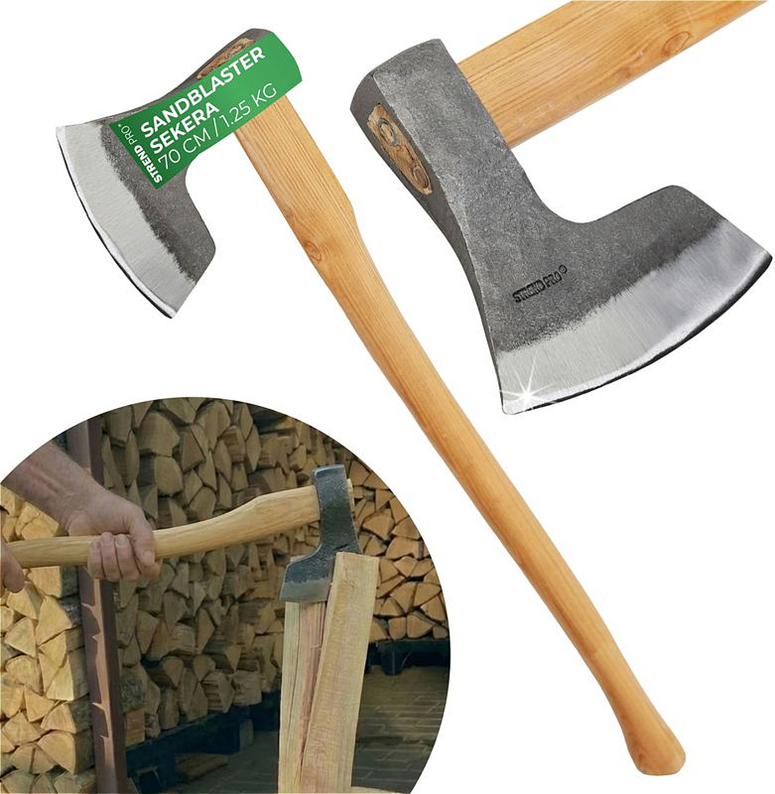 Univerzální lesnická sekera na osekávání, kácení i štípání dřeva. Lakovaná násada z kvalitního jasanového dřeva, hmotnost výkovku 1250 g, celková délka 700 mm, celková hmotnost 1830 g.