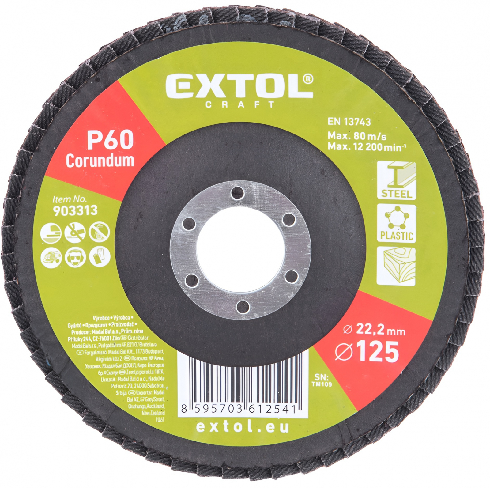Lamelový brusný kotouč 125 mm, hrubost P60, abrazivo korund (oxid hlinitý). Broušení, odstraňování materiálu, zkosení okrajů, čištění povrchu a dokončování. Na ocel, neželezné kovy nerezovou ocel, litinu, dřevo, plasty. Max. otáčky 12 200/min.