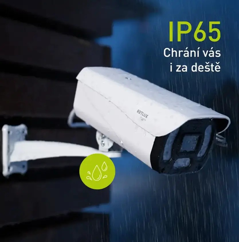 Venkovní IP kamera s rozlišením 2K QHD (2560 × 1440 px), barevným nočním viděním nebo nočním viděním s IR přísvitem, fixním objektivem a krytím IP65 zajišťuje spolehlivý dohled exteriéru nebo interiéru. Detekuje pohyb, osoby i zvuk, umožňuje obousměrnou komunikaci, nabízí soukrom celý popisý režim pro okamžité vypnutí snímání. Záznam ukládá na microSD kartu až 256 GB nebo do cloudu, připojení probíhá přes Wi-Fi 2,4 GHz s podporou Bluetooth párování, ovládání v aplikaci RETLUX home. Vhodná pro vstupy, příjezdy i zahrady. Rozměry 8 × 17,5 × 10,5 cm. V balení PoE adaptér, montážní držák a spojovací materiál.