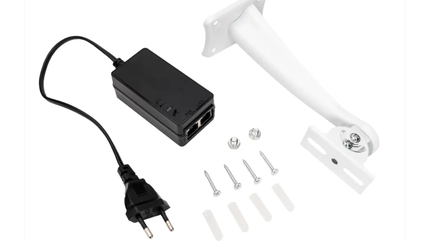 s PoE adaptérem pro snadné připojení. Součástí je také držák,