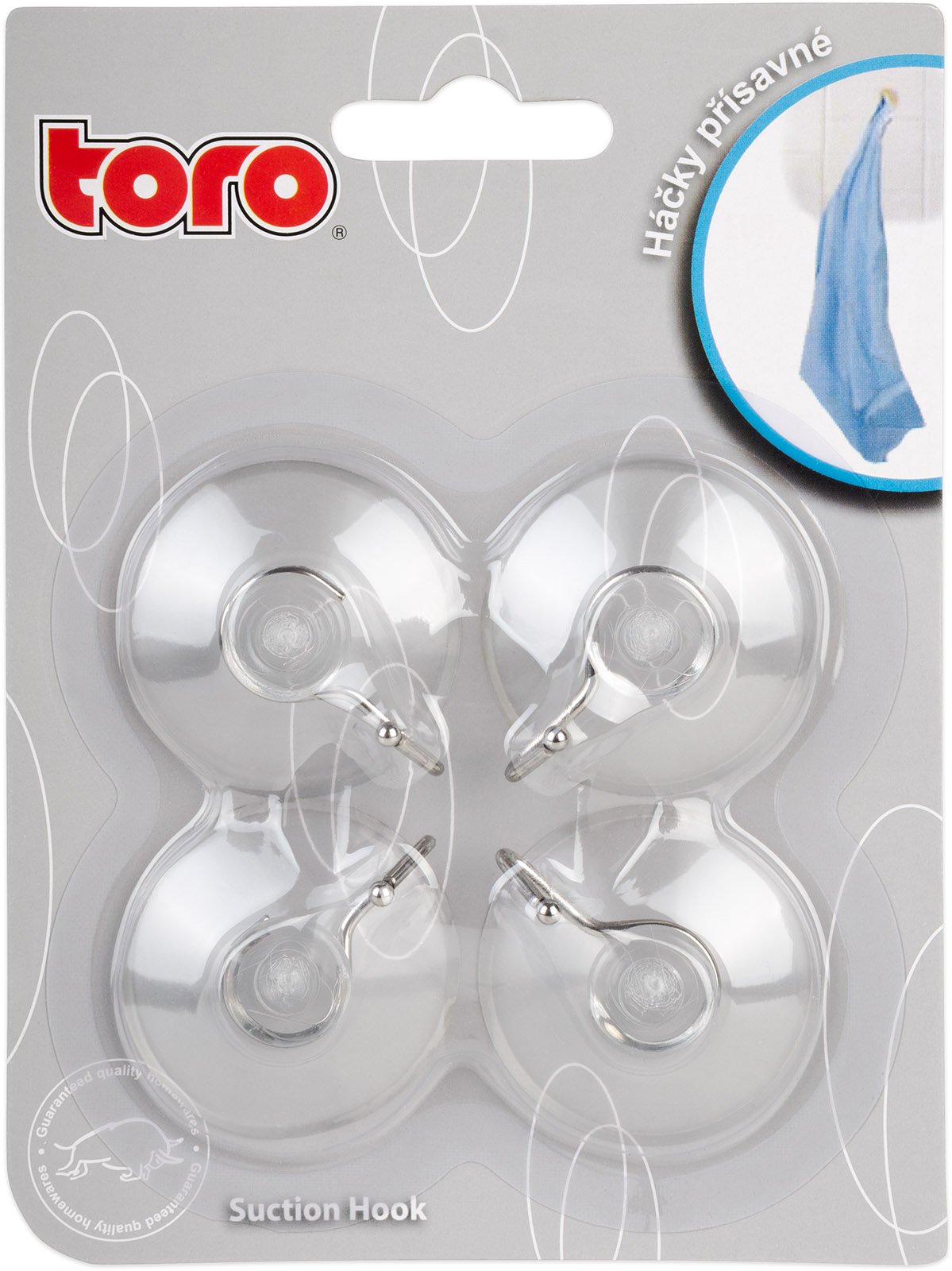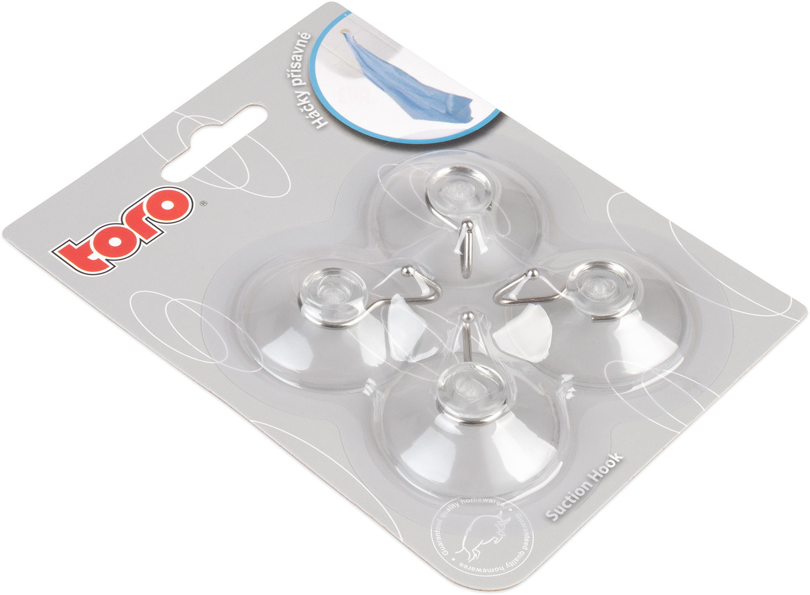 Přísavné háčky, čiré, kovové ukončení, průměr háčku 4,5cm, balení obsahuje 4 ks.