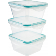 4dílná sada plastových dóz na potraviny MagicHome obsahuje 4 čtvercové dózy o objemu 0,6 l, rozměr 14,3 x 5,8 x 14,3 cm, vhodné pro skladování potravin v chladničce i mrazničce, vhodné do mikrovlnné trouby, možnost mýt v myčce nádobí, teplotní odolnost -20°C až 110°C, PBA FREE