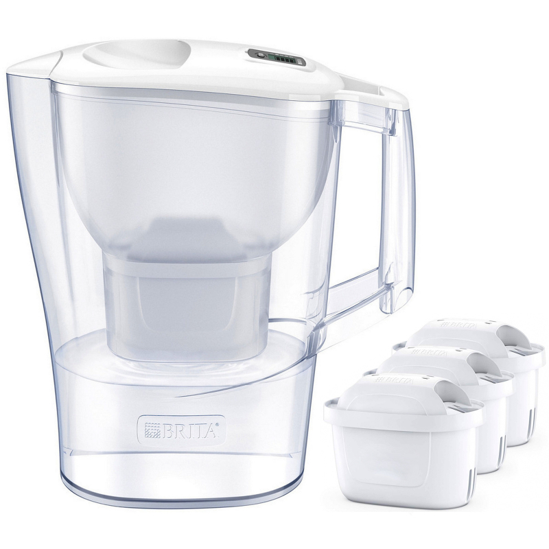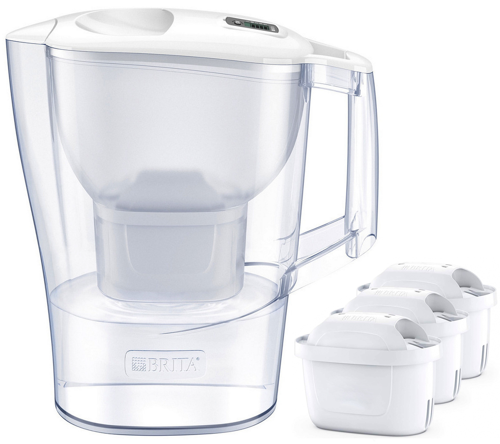 Konvice Brita Aluna včetně 3x filtru Brita Maxtra Pro Pure Performance, díky velkému objemu poslouží i početnější rodině, případně menším kancelářím, díky technologii FlowControl dojde k optimálnímu přefiltrované celého objemu horní části konvice s objemem 2,4 l po dobu 5 minut, celý popisdíky odklopnému víčku, můžete konvici plnit pohodlně jednou rukou, částečně transparentní trychtýř zajistí, že budete mít vždy přehled o tom, kolik vody ještě můžete natočit, digitální ukazatel Brita Memo za vás ohlídá datum optimální výměny filtru.