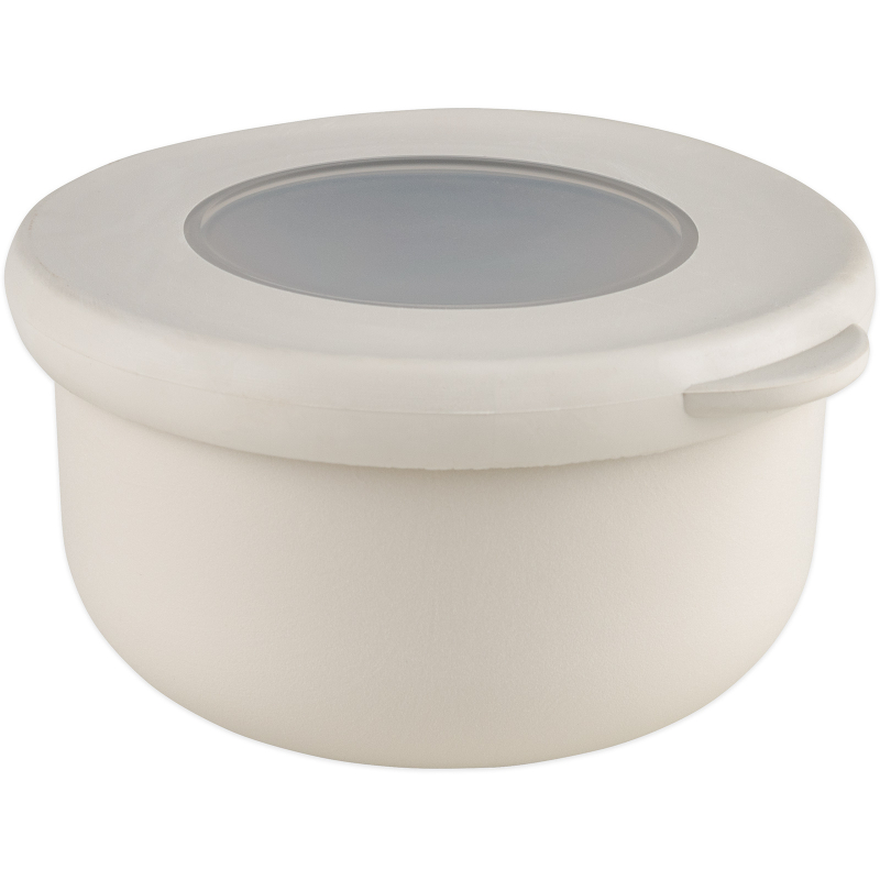 Plastová kulatá dóza, víko s průhledem. Objem 250 ml, horní průměr 9,8 cm, výška 5,5 cm, hloubka 10,2 cm. Lze mýt v myčce nádobí (bez víčka).