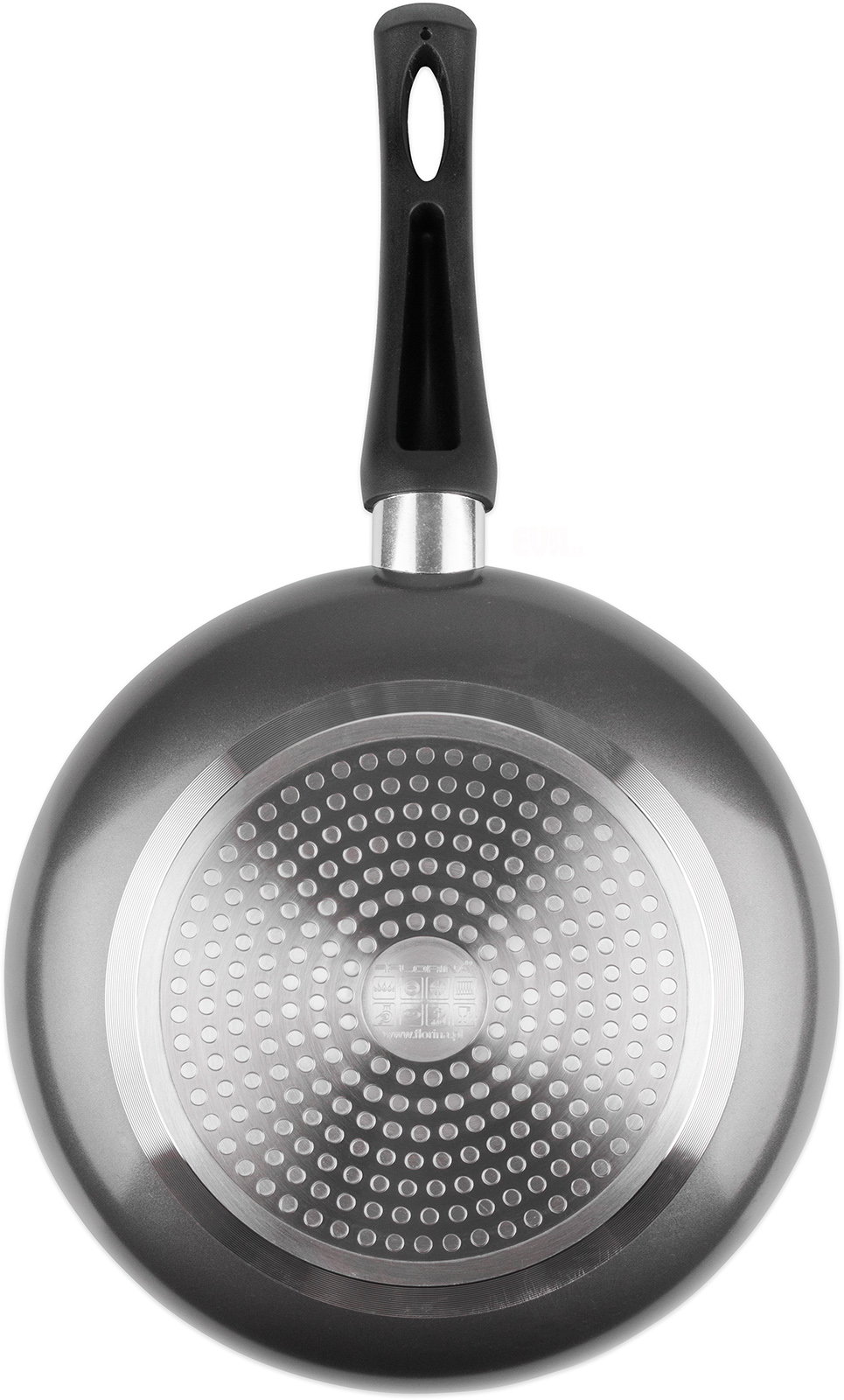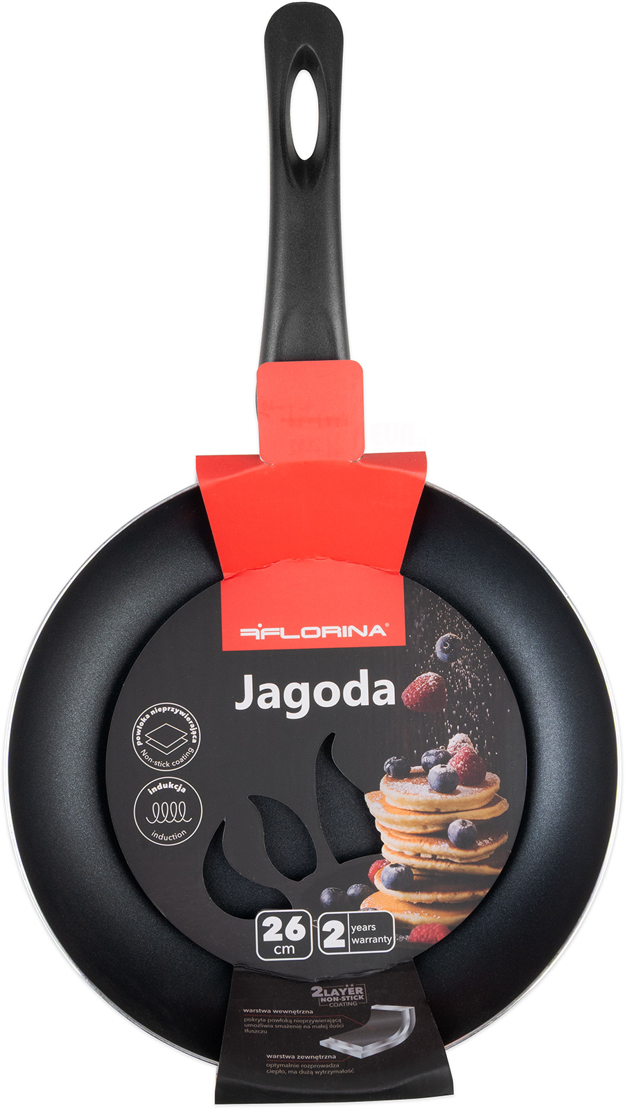 Pánev z vysoce odolného hliníku opatřena vnitřním povrchem odolným proti oděru, teplotně vysoce odolný, zabraňuje připalování, snadná údržba a čištění, průměr 26 cm, výška 5,5 cm, vhodná na všechny druhy ohřevu včetně indukce.